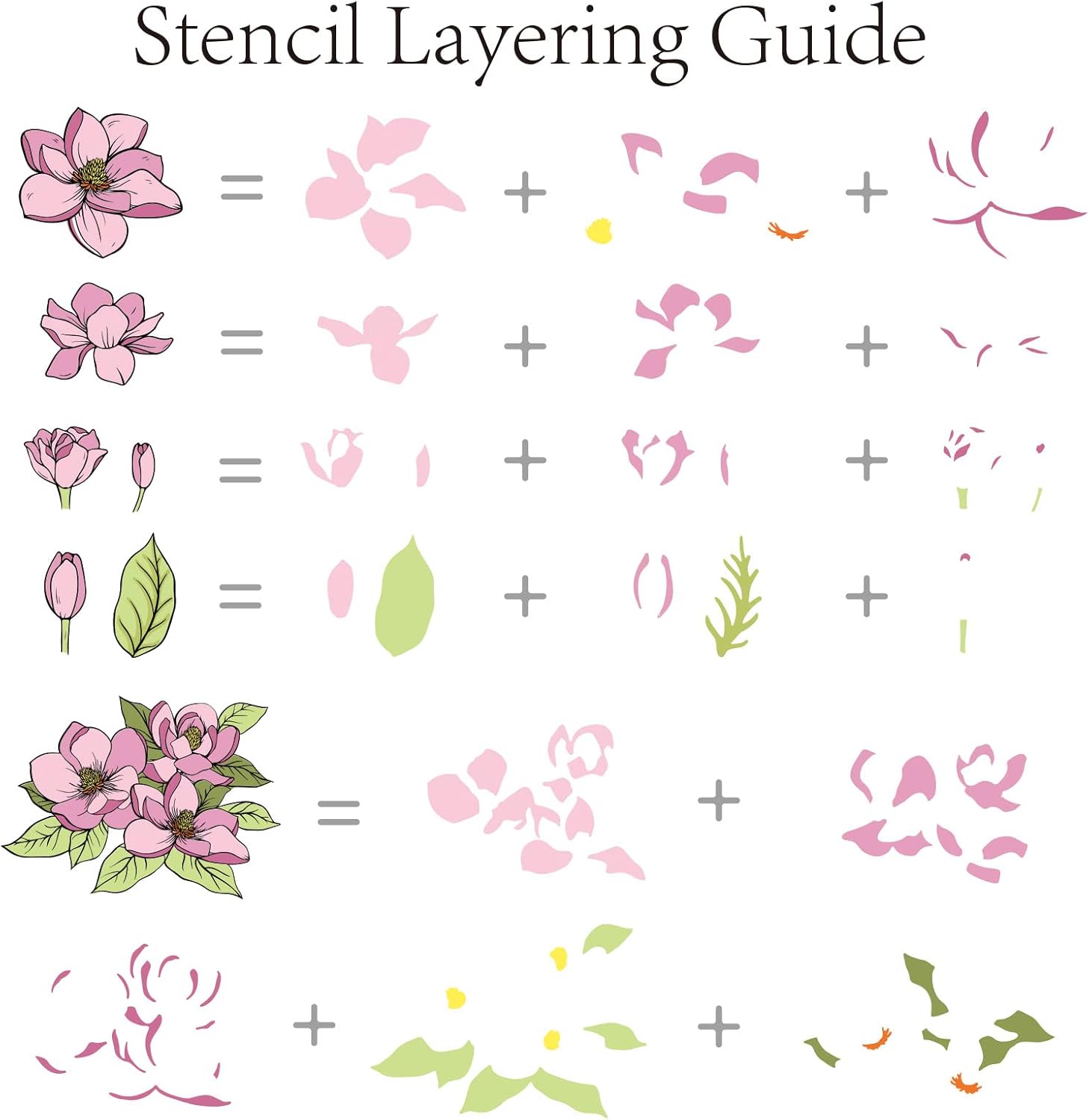ORIGACH Realistic Magnolia Flower Stamps and Die and Layering Coloring Stencil Bundle for Card Making Album Arts Crafts Supplies
