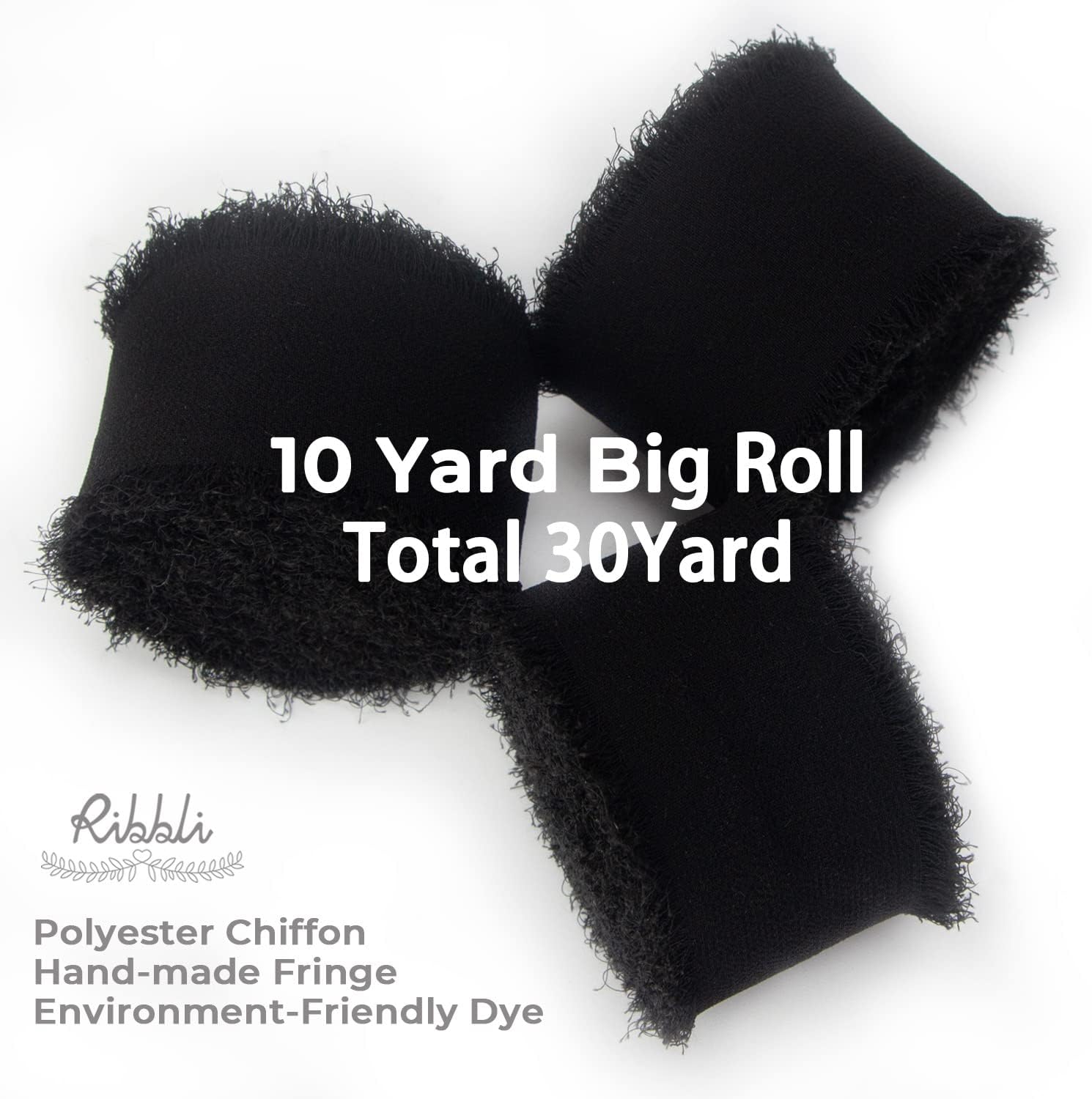 Ribbli Black Chiffon Ribbon - 1.5 inch x 30 Yard Handmade Silk, Fringe Chiffon for Wedding Invitations, Gift Wrapping, Bridal Bouquets, Flower Arrangement