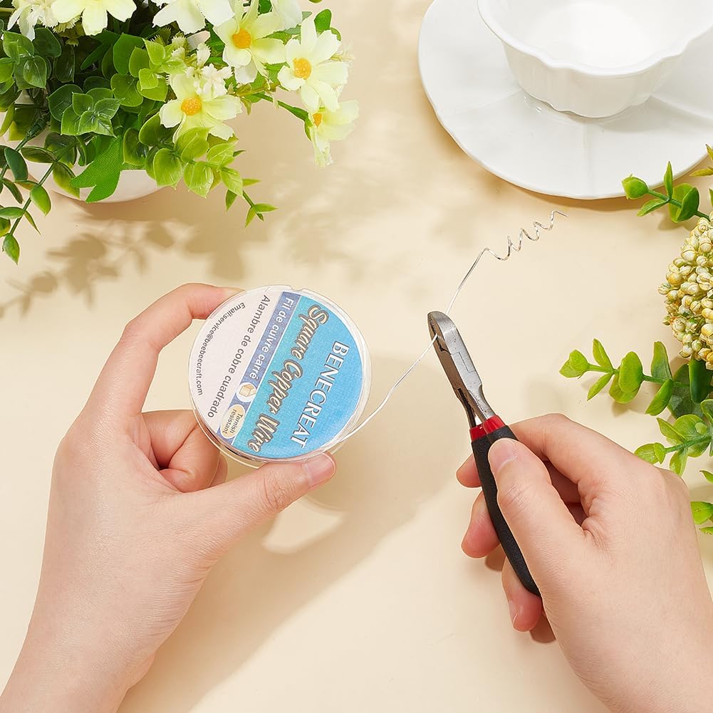 BENECREAT 33 Feet 21Gague Square Copper Wire, Silver Craft Copper Wire Tarnish Resistant Jewelry Wire for Jewelry, Hobby Craft Making, Floral, Decorations