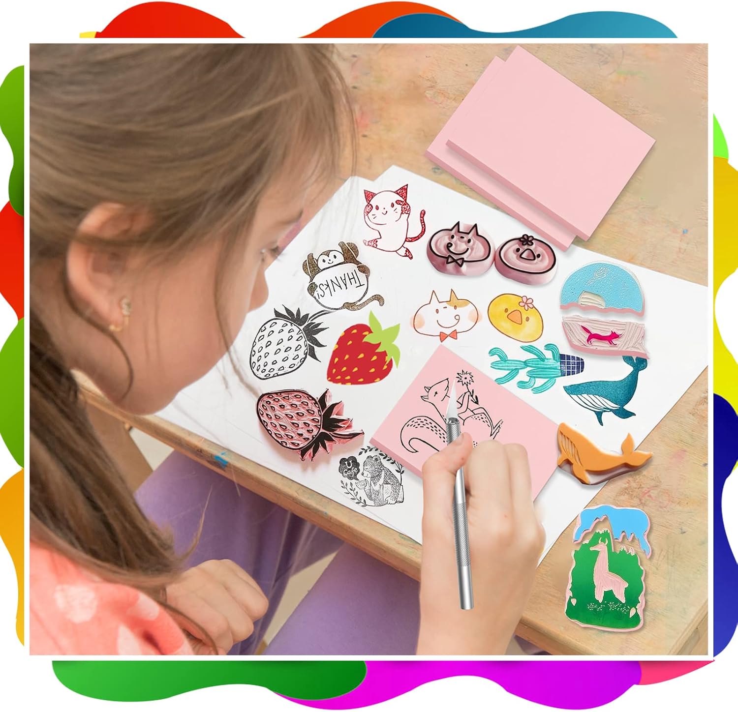 - DIY Fun Prints: With this DIY stamp-making kit you will easily turn your creative sketches into stamps. Creating your own limited edition prints, greeting cards, and many other paper crafts. Personally carve a stamp for your family or friends and experience the joy of wood carving