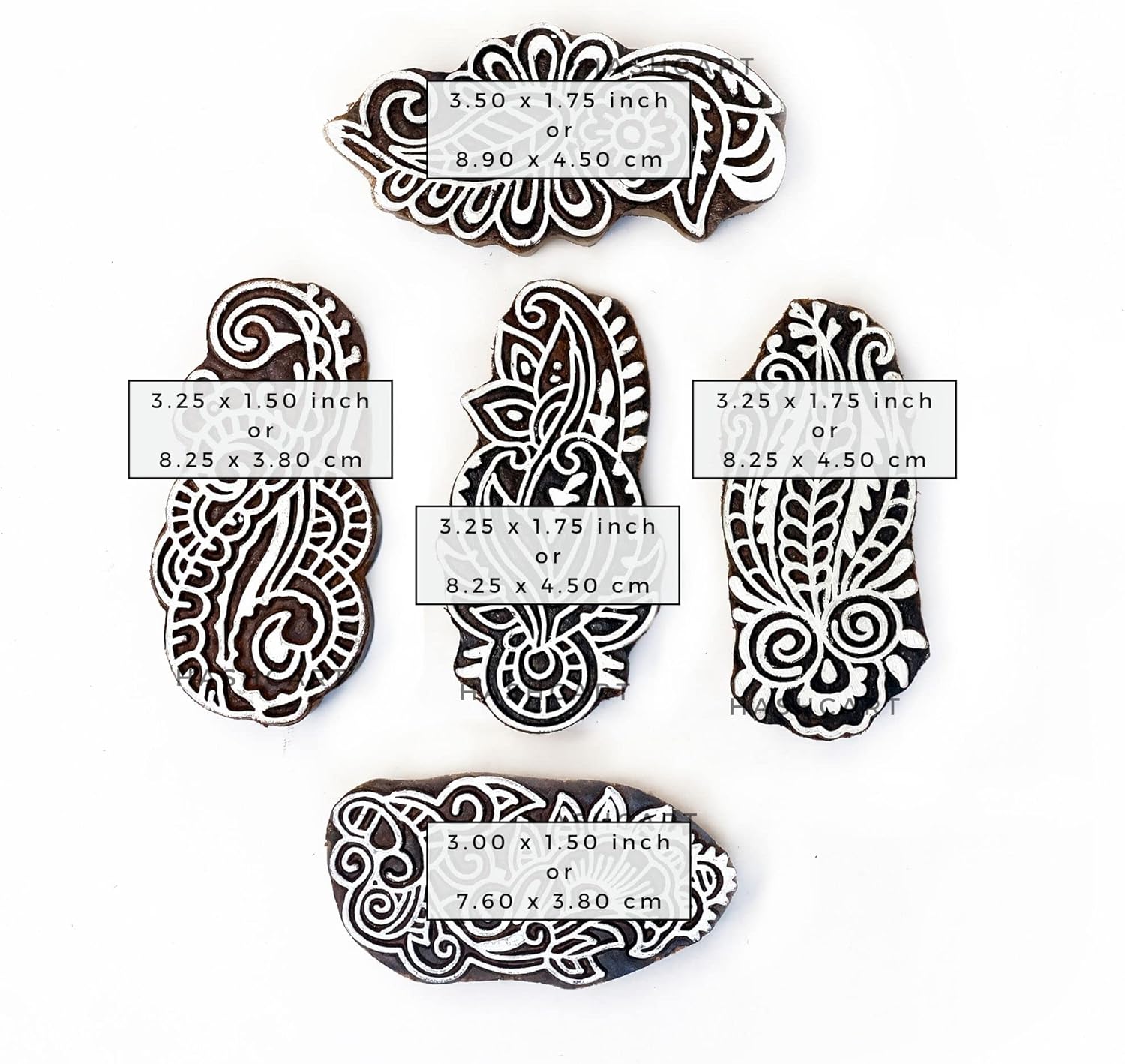 Wood Block Stamp - Handmade Wooden Printing Block, Set of 5 - Wooden Pottery Stamps for Blocks Printing - Wood Blocks for Crafting on Fabric, Clay & Henna Tattoo Hashcart®
