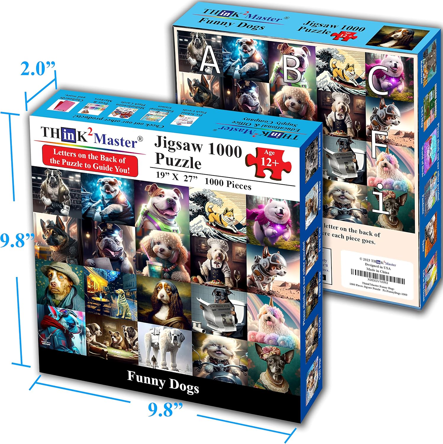 Think2Master Funny Dogs 1000 Pieces Jigsaw Puzzle Featuring heartwarming Puppies and Dogs. Fun for Teens, Seniors & Families. Great Gift for Kids Ages 13+ Size: 26.8” x 18.9