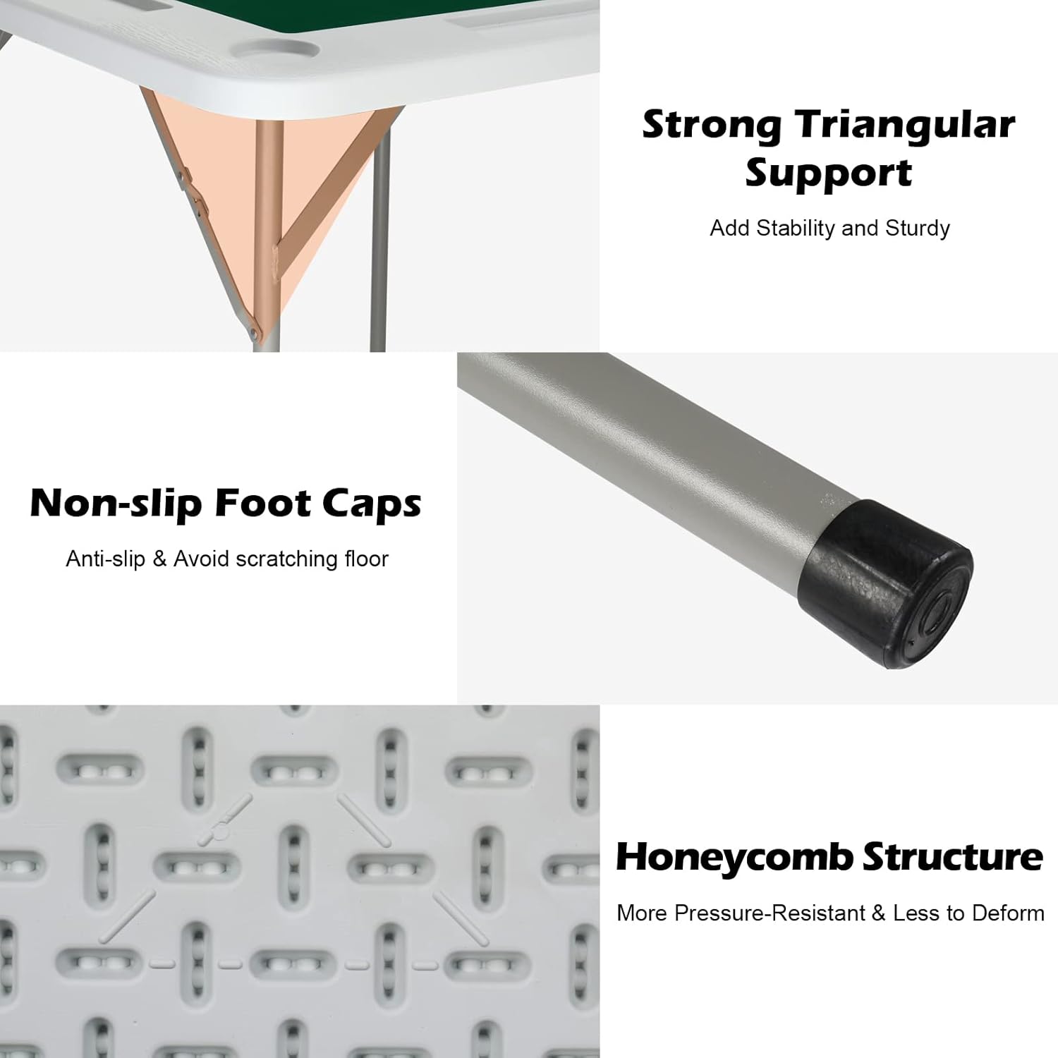 - 【Sturdy & Durable】It is made of strong and durable high-quality PE material and powder-coated iron frame. The non-slip feet and triangular support hinge design of the table legs add stability while avoiding scratching the floor. The honeycomb structure design makes the table top more pressure-resistant and less prone to deformation.It able to bear up to 265 lbs.