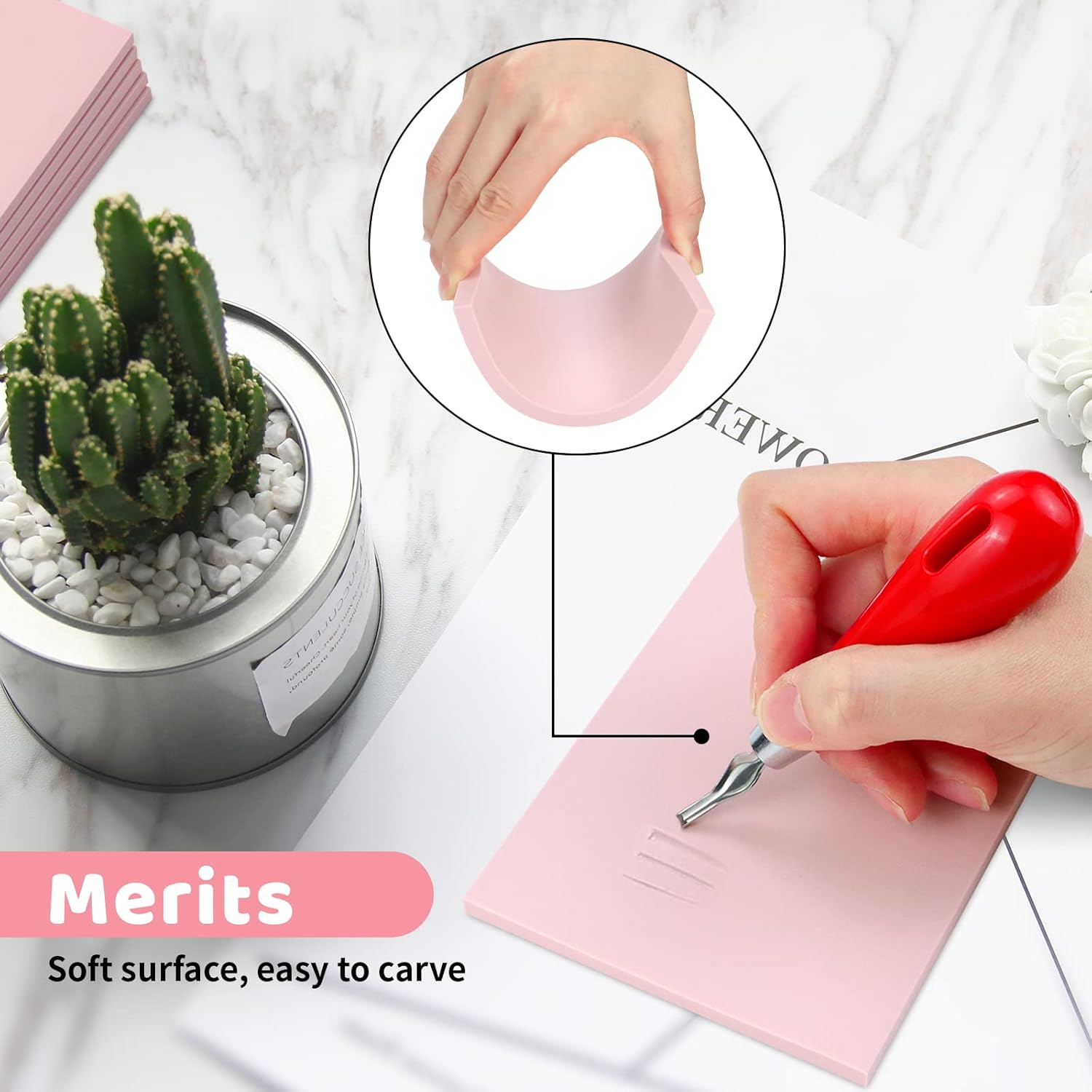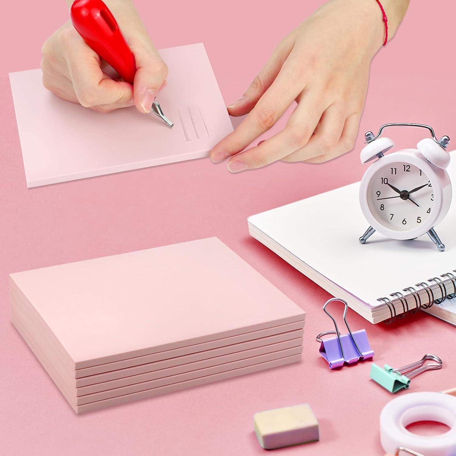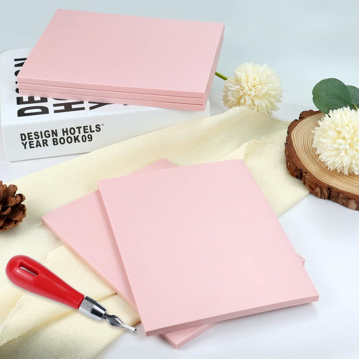 6 Pack 8"x6" Pale Pink Rubber Stamp Carving Blocks Rubber Carved Brick Soft Rubber Linoleum Block for Craft Project