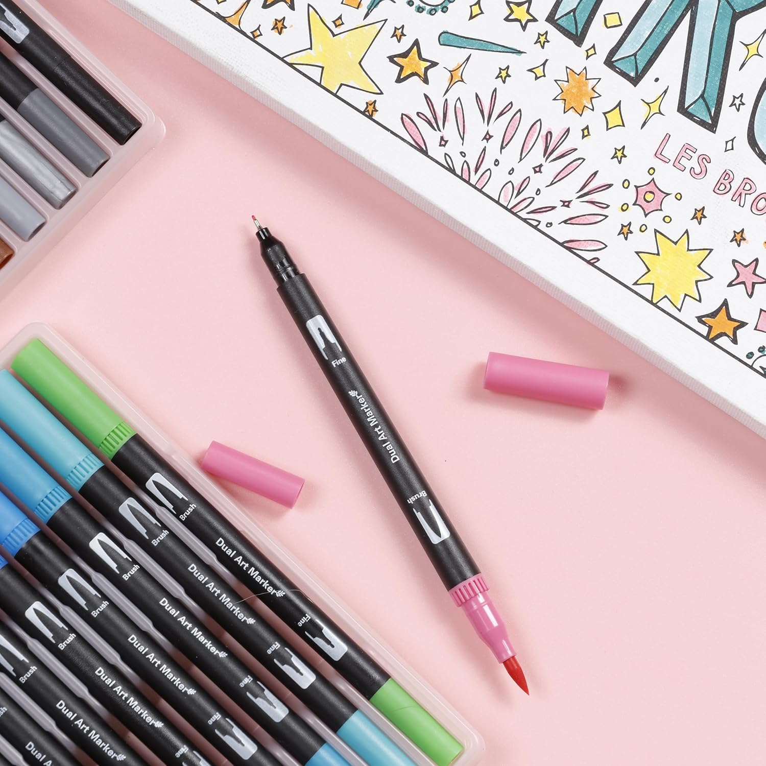 - BRUSH & FINE TIP COMBO – These brush markers give you artistic flexibility. Use the brush side for dynamic strokes and the fine point for neat detail work and lettering.