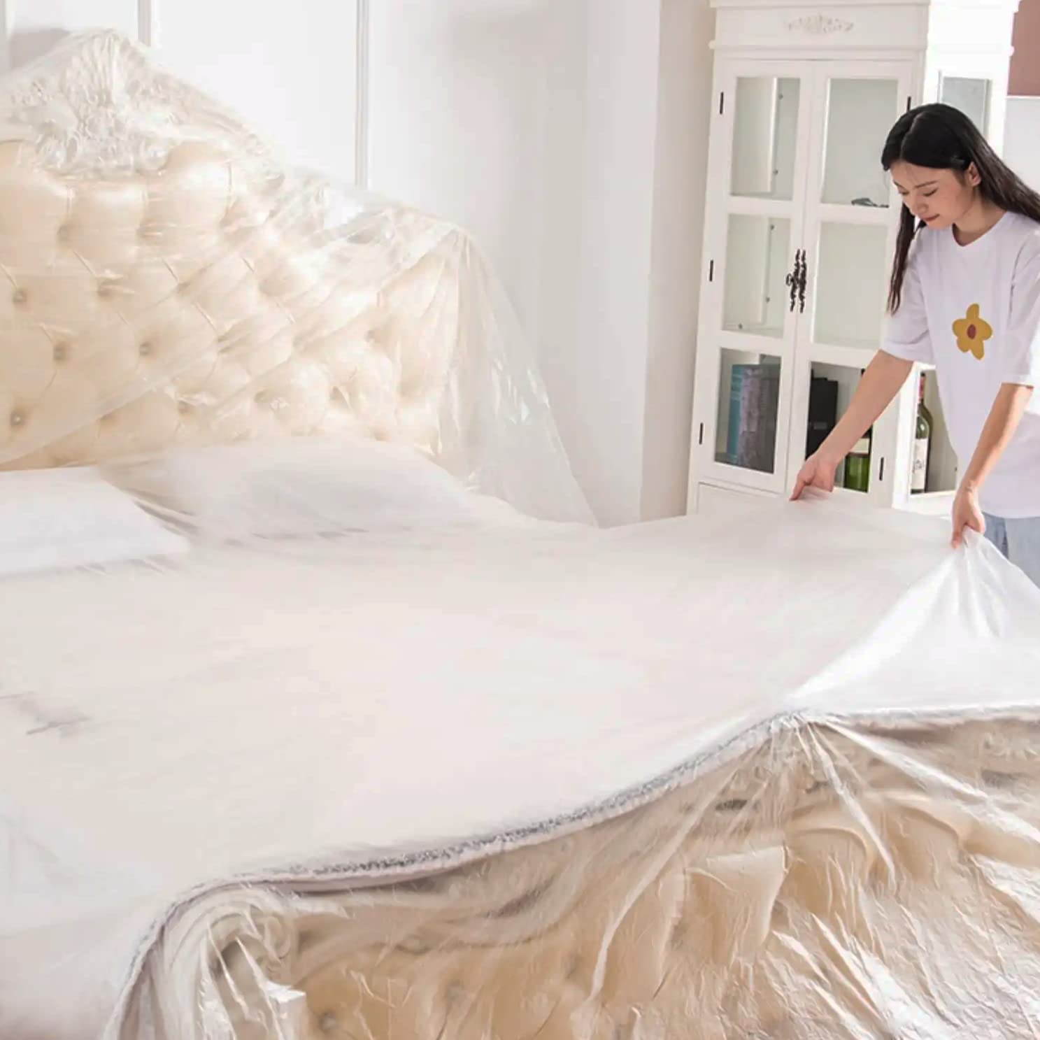 - PRODUCT FEATURES: A pull down drop film and drop cloth cover that is pre-taped for easy hold; the film with air-plasma treated clings to paint of car or wall, damage free, much way faster for preparation, simple to use by sticking and unfolding; ensures that paint coatings will adhere to the plastic without flaking off; an excellent overspray protection cover that stops paint bleeding through; oil and other solvent resistant and ECO friendly material.