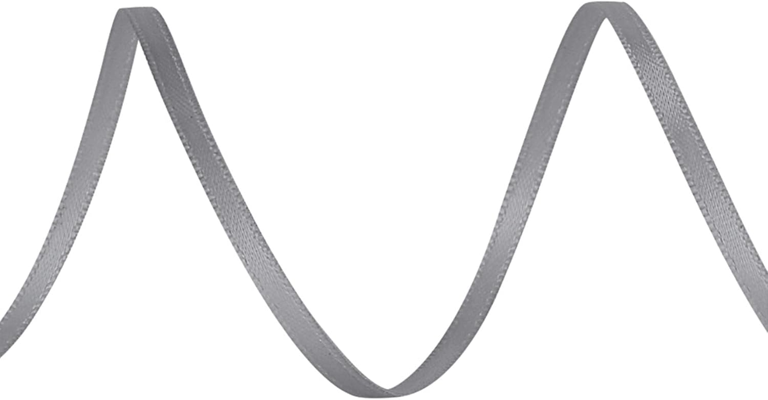 LIUYAXI Silver Double Faced Satin Ribbon, 1/8" X Continuous 100 Yards, Thin Ribbons Perfect for Gift Wrapping Wedding Invitation Card Hair Bows Tag Floral Arrangement DIY Craft
