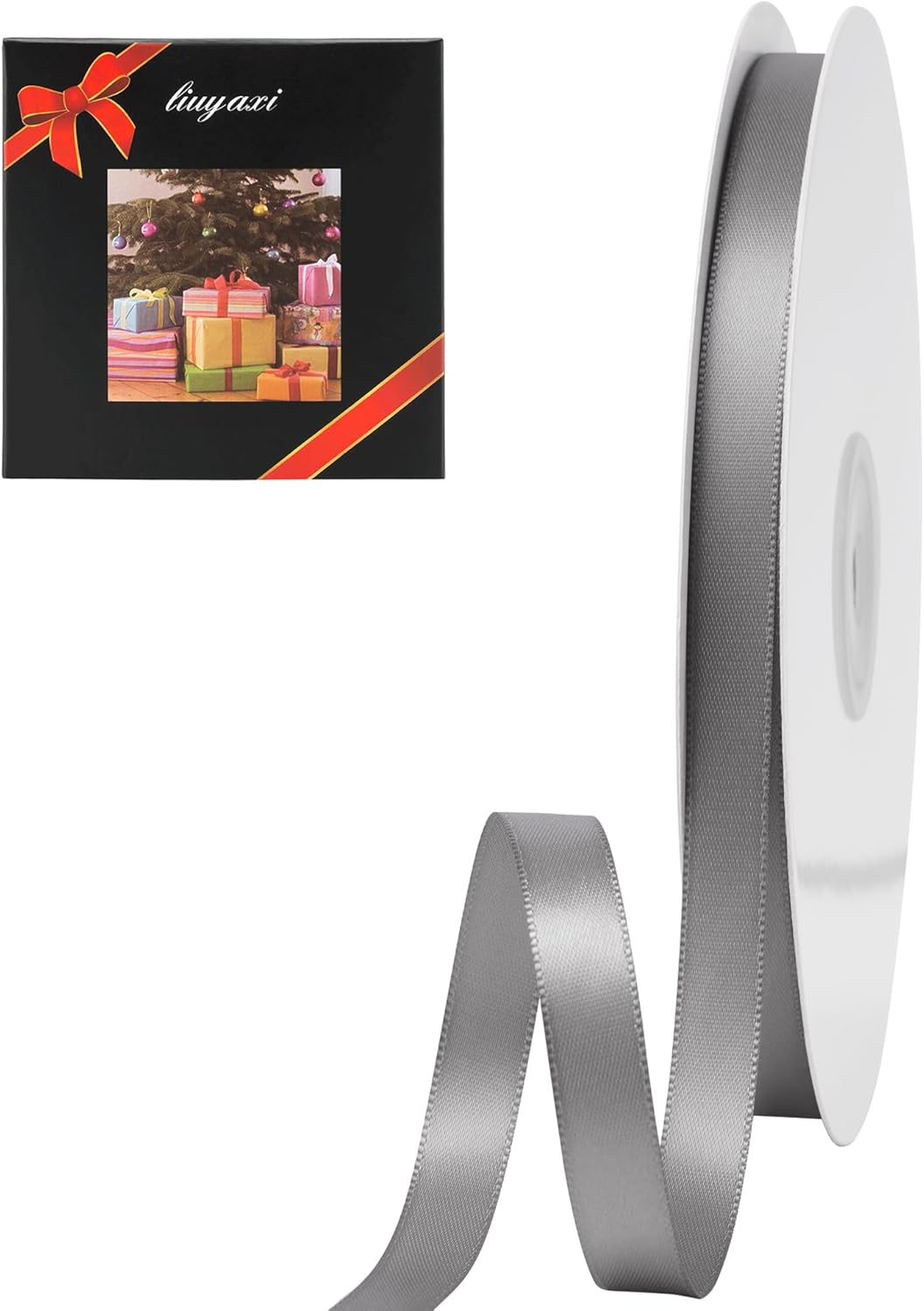 LIUYAXI Silver Double Faced Satin Ribbon, 3/8" X Continuous 100 Yards, Ribbons Perfect for Gift Wrapping Bows Bouquet Wedding Decor DIY Craft and More