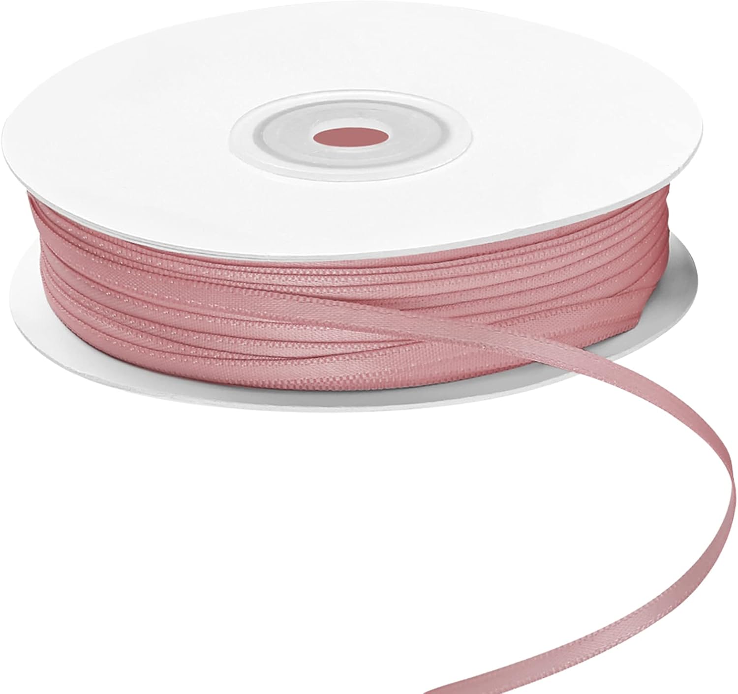 LIUYAXI Rose Gold Double Faced Satin Ribbon, 1/8" X Continuous 100 Yards, Thin Ribbons Perfect for Gift Wrapping Wedding Invitation Card Hair Bows Tag Floral Arrangement DIY Craft