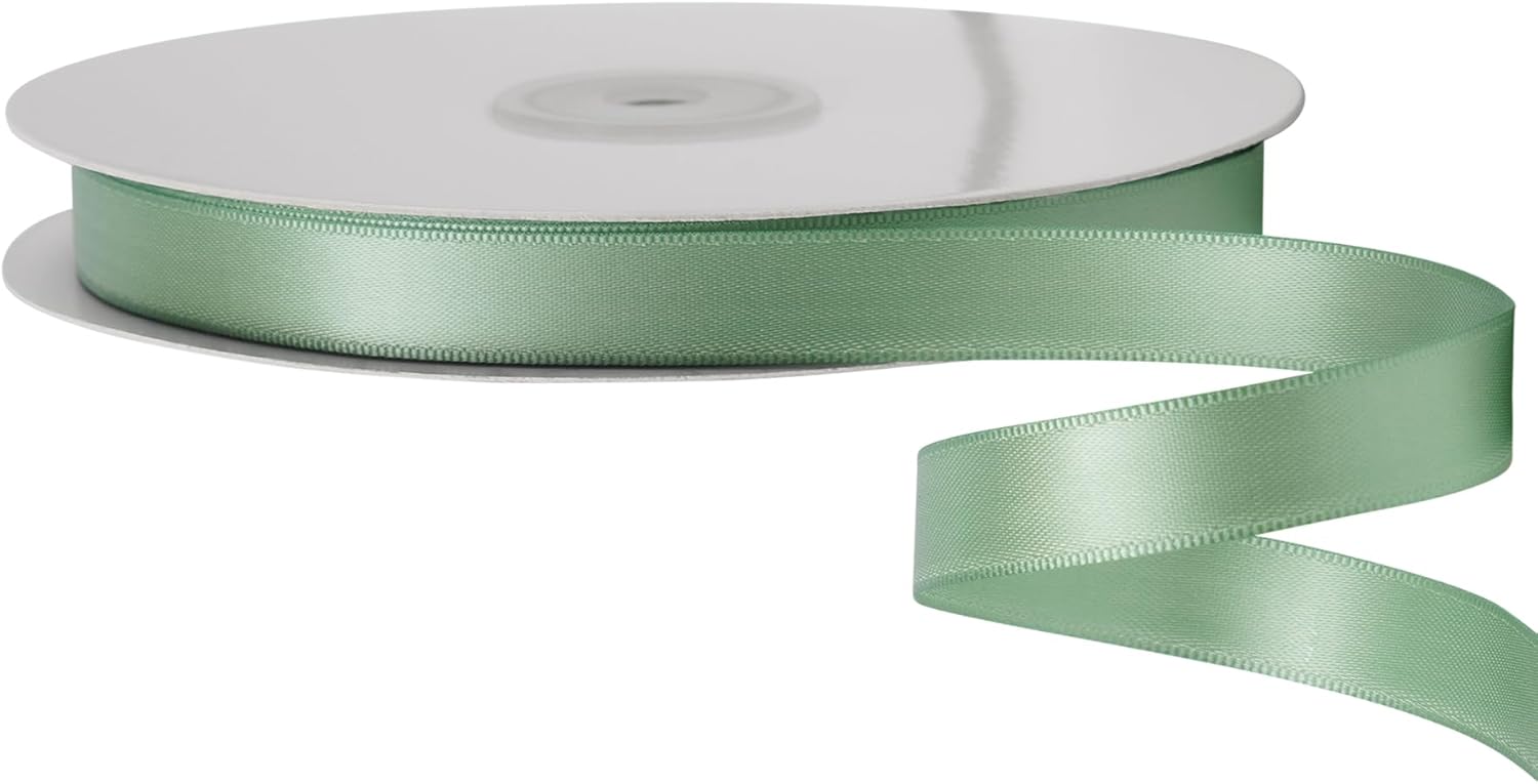 LIUYAXI Sage Green Satin Ribbon, Double Faced 1/2" X Continuous 25 Yards Ribbons Perfect for Gift Wrapping Bows Bouquet Wedding Craft and More