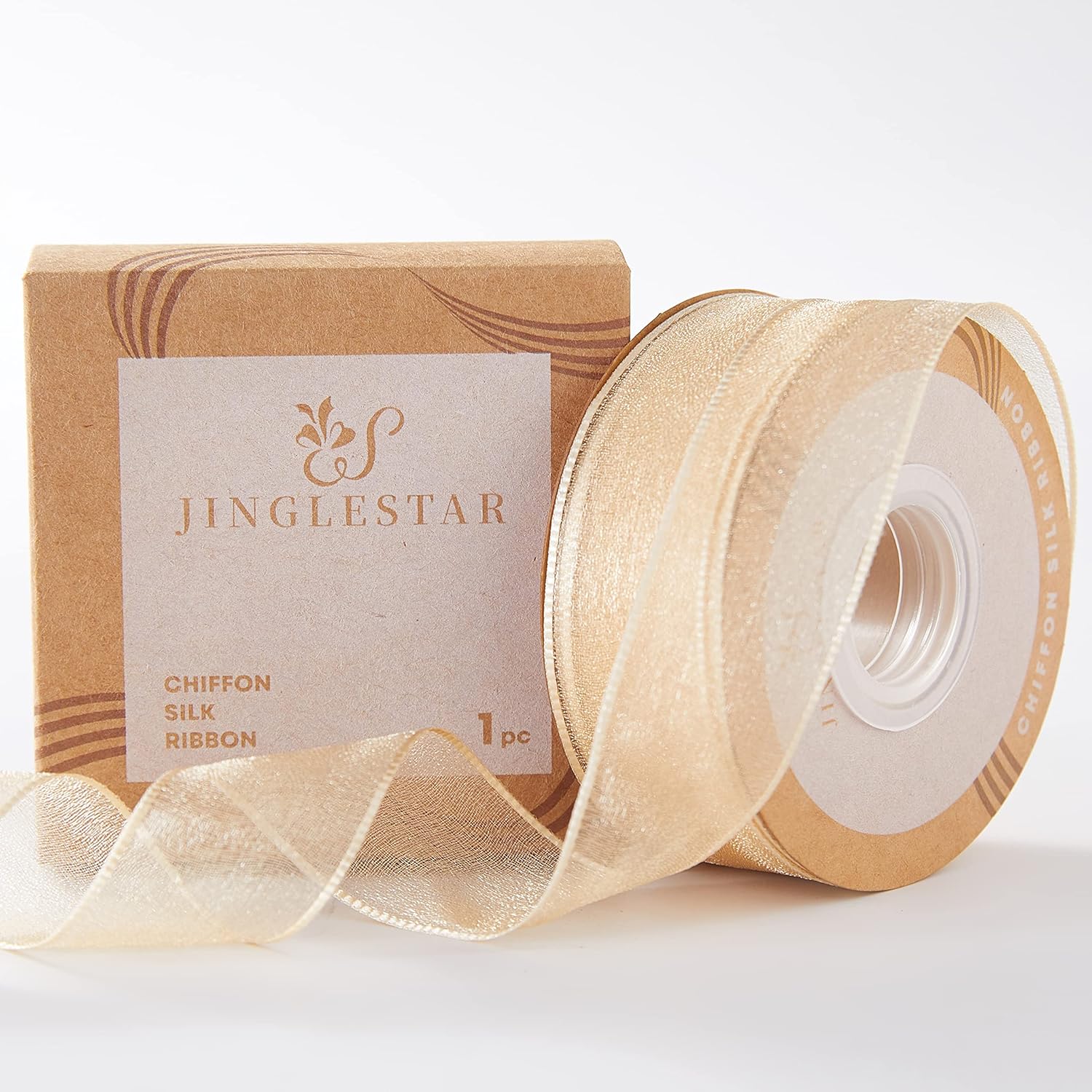 1 Inch Wide Sheer Chiffon Ribbon - Pearl Silk Woven Ribbon Suitable for Gift Wrapping, Wedding Decor, Home Decor, Girl Hair Accessories Handmade DIY (25 Yards/roll) (Champagne)