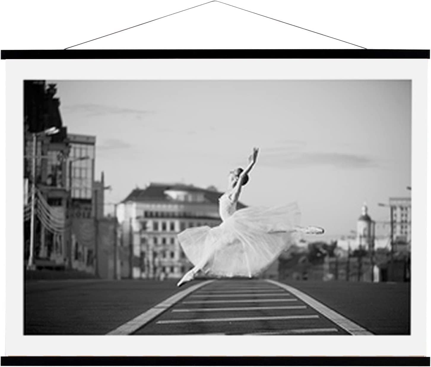 - Quick Assembly and Easy Use: This poster hangerās solid wood magnetic dowels clip onto the printās top and bottom, allowing you to change out the art whenever you want without damaging them
