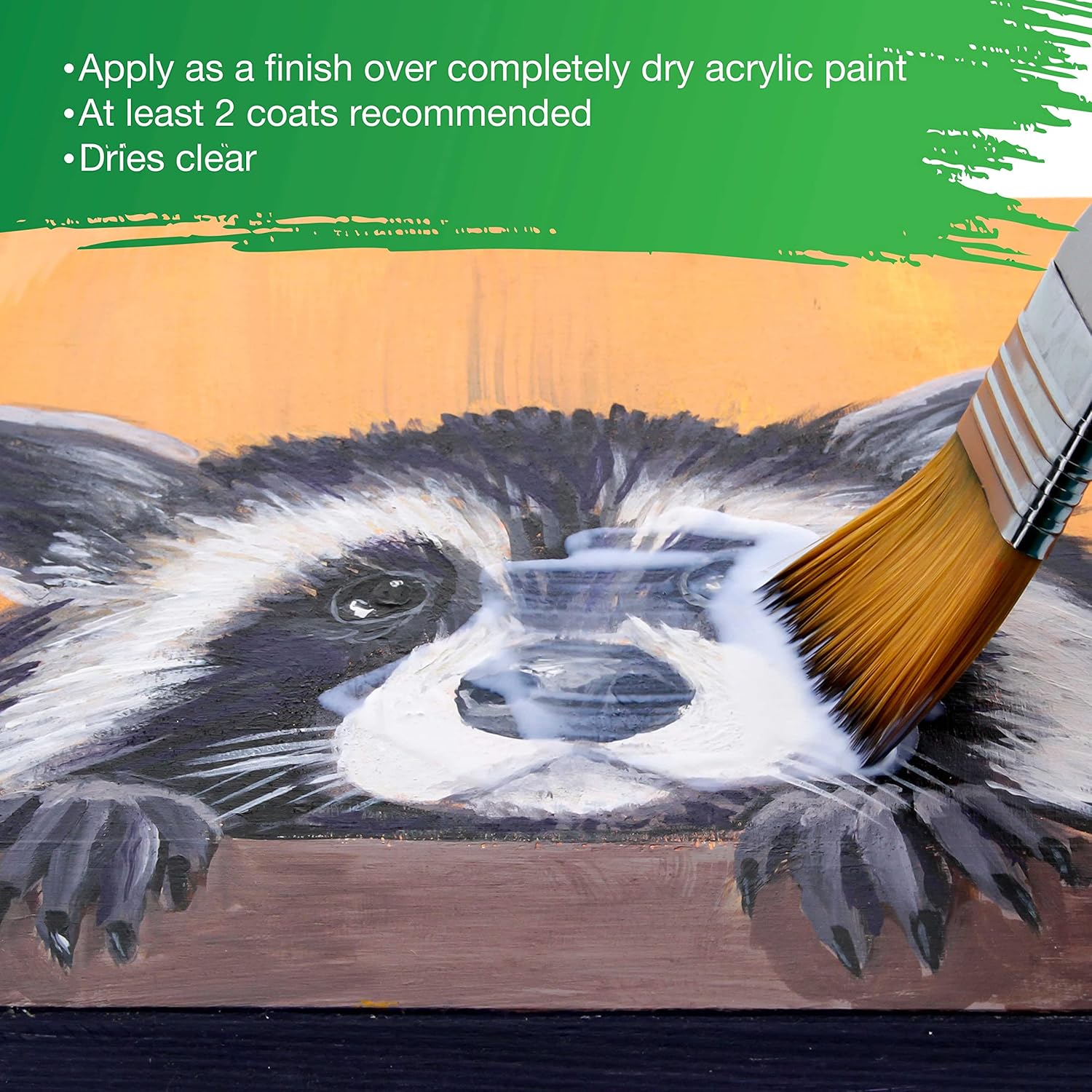 - Apply Over Dry Acrylics: Over two coats recommended. Simple application to seal and protect your paintings from damaging UV light.