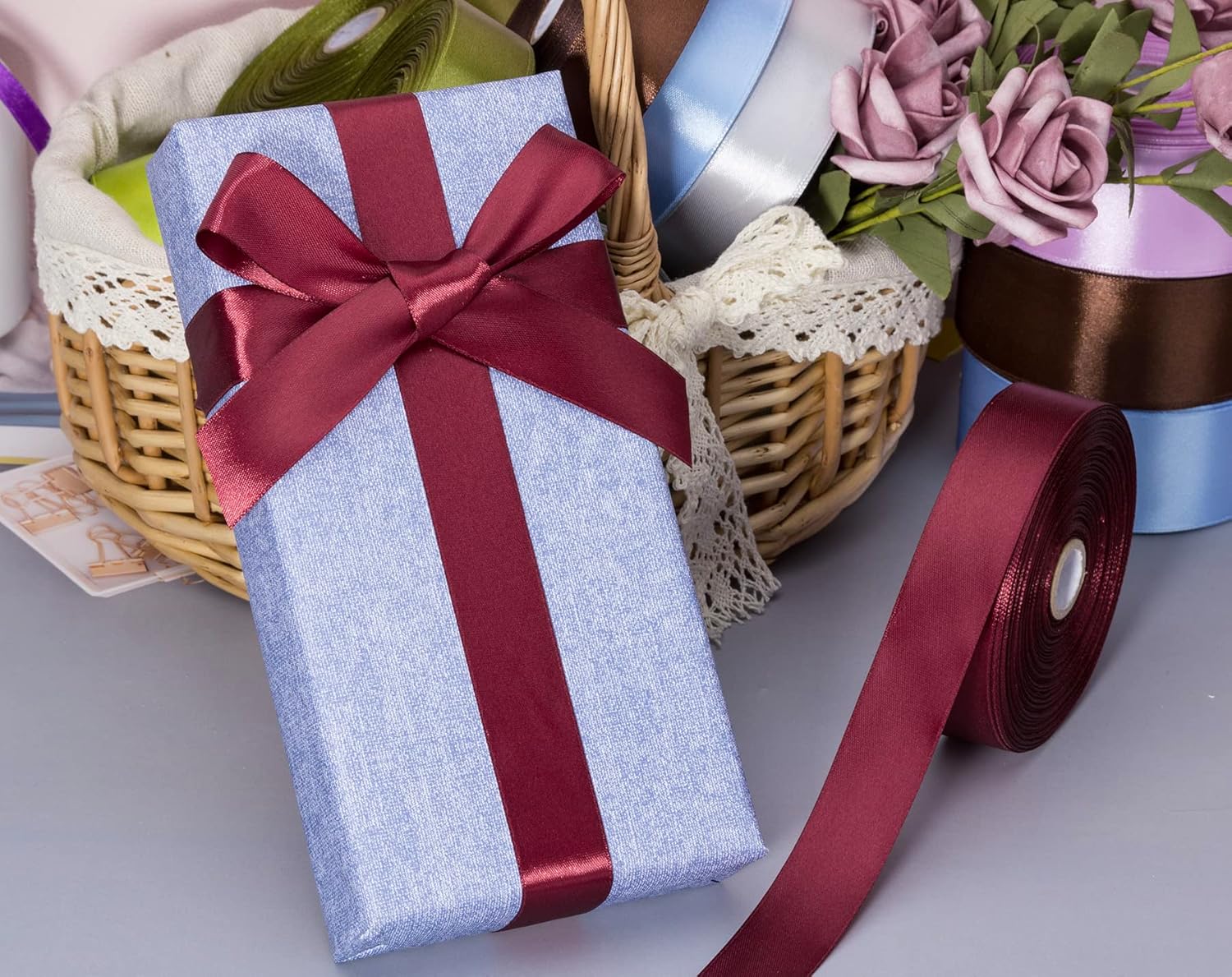 - Versatile ribbon, wide range of applications, especially for gift box packaging, invitations, floral design, handmade roses, festival and party decorations, baking packaging, bouquet ribbons, crafts, and more creative design