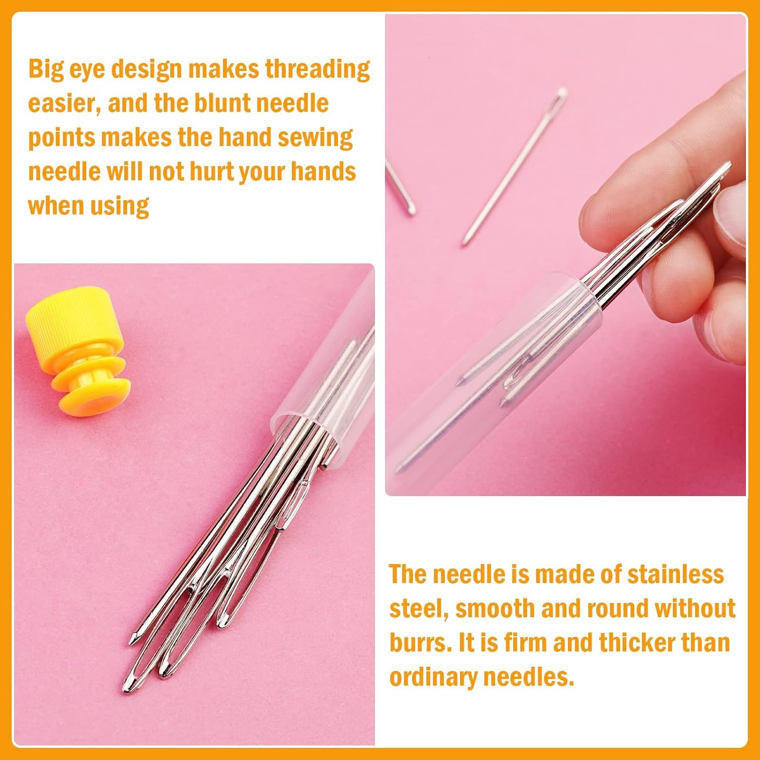 - STITCH MARKERS KIT: This stitch markers kit provides you with a total of 300 stitch markers, 9 blunt hand sewing needles in 3 sizes, 1 needle tube and 1 storage box
