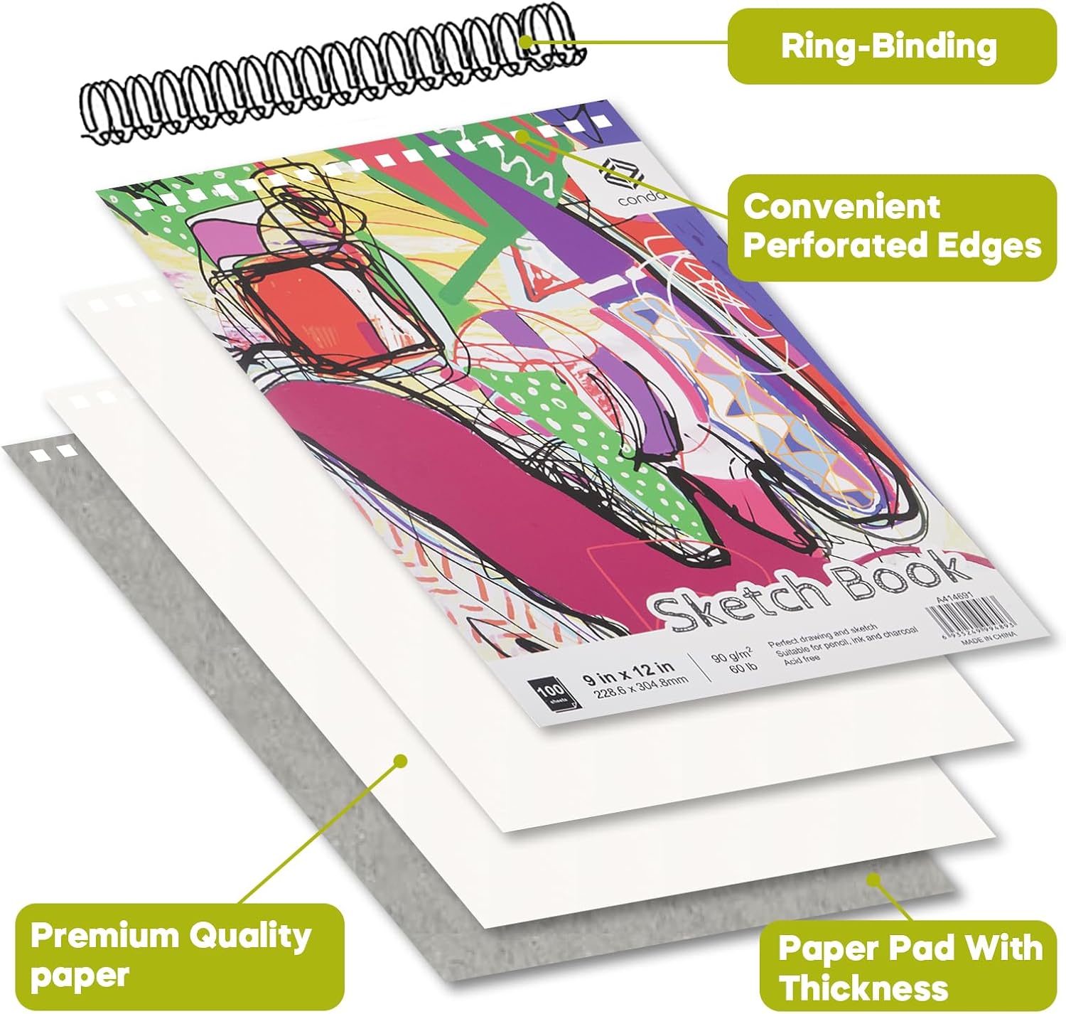 - FOR ALL THOSE WHO LOVE PAINTING:The conda sketchbook is suitable for all those who love to draw, for beginners to learn and develop their drawing skills, as well as the perfect gift for drawing enthusiasts. The high quality paper provides an excellent drawing experience for people of all drawing levels. The 9 x 12 sketchbook is therefore perfect for kids and adults to develop their drawing skills.