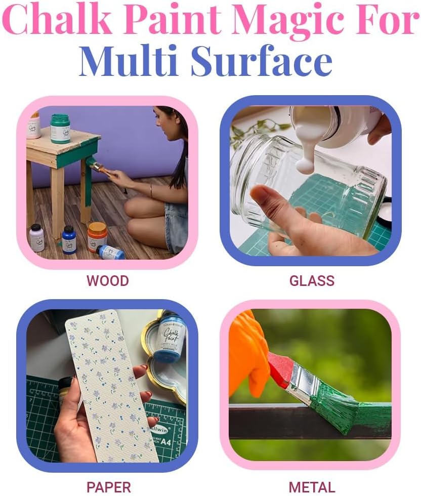 - ✔ ✔ SUITABLE FOR MULTIPLE SURFACES: Granostone chalk acrylic paint is perfect for use on all surfaces like Glass, Wood, Metal, Paper, Terracotta Leather, etc. You can mix this paint colour with other chalk paints for different shades and use it for furniture, cabinets, and home decor
