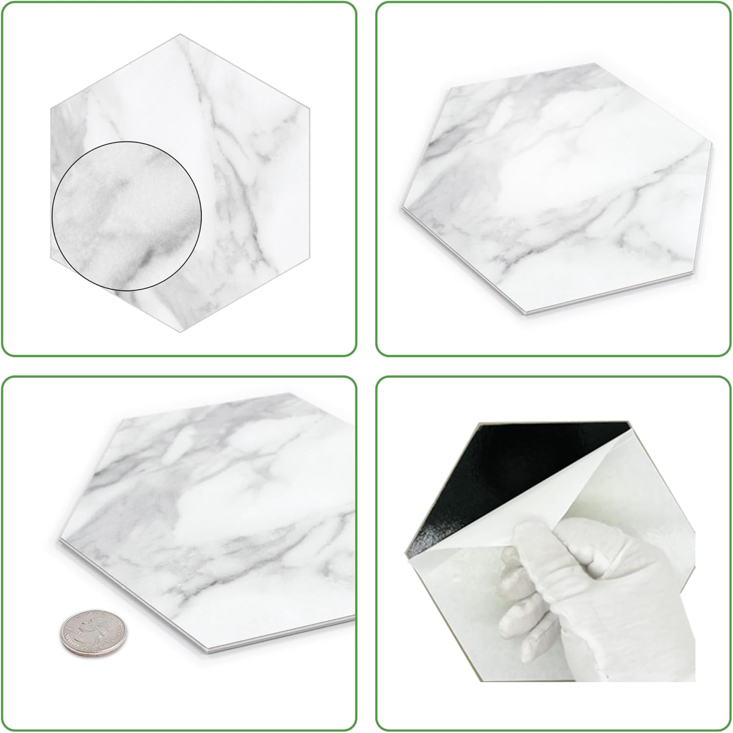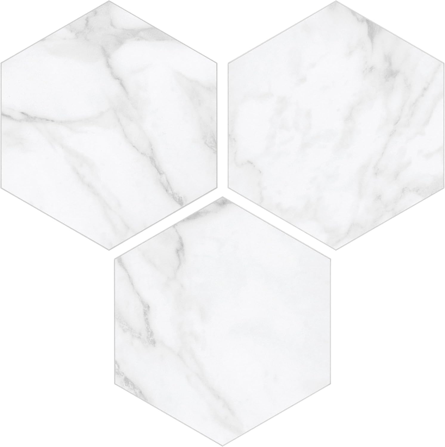 45-Sheet Hexagon Peel and Stick Backsplash, 6" x 7" White Calacatta Marble Looks Self Adhesive Wall Tile, Stone Composite Stick on Decorative Mosaic Tile for Kitchen Bathroom Fireplace