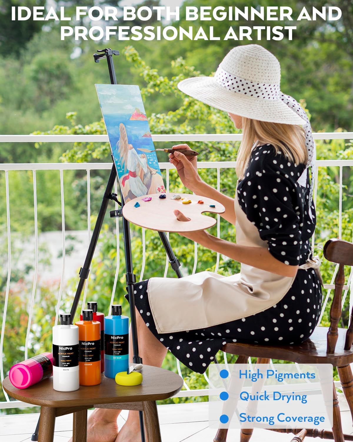 - MULTI SURFACES: The Nicpro Acrylic Paint is ideal for most surfaces including wood, glass, canvas, fabric, plastic, rocks, ceramic, leather, paper, chalk board and more. Come with sponge and paint knife, great gift choice for art enthusiasts, beginners and professional artists. It also comes with a color wheel to help organizing colors, making selection and combination easier