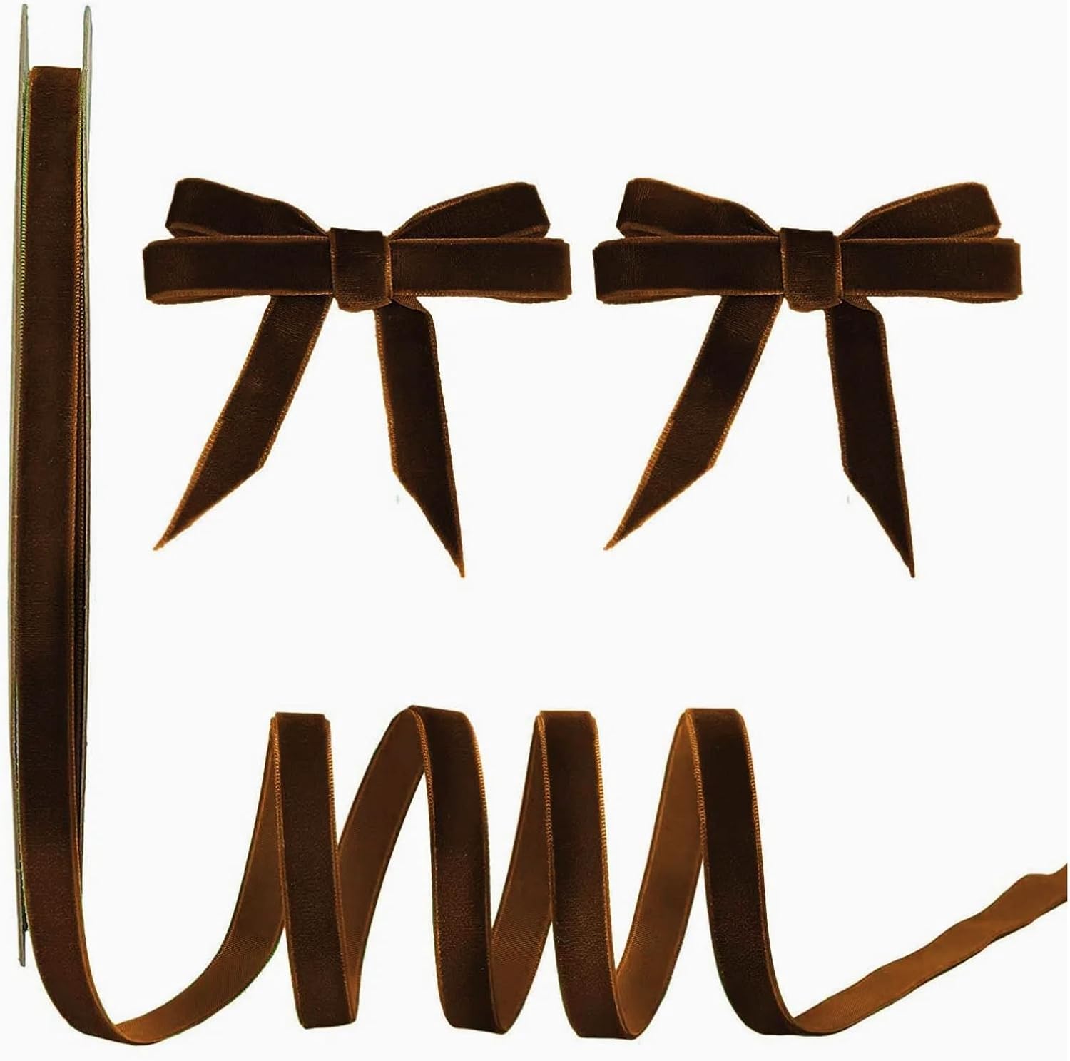 - 3/8" X 15 Yards Brown Velvet Ribbon.