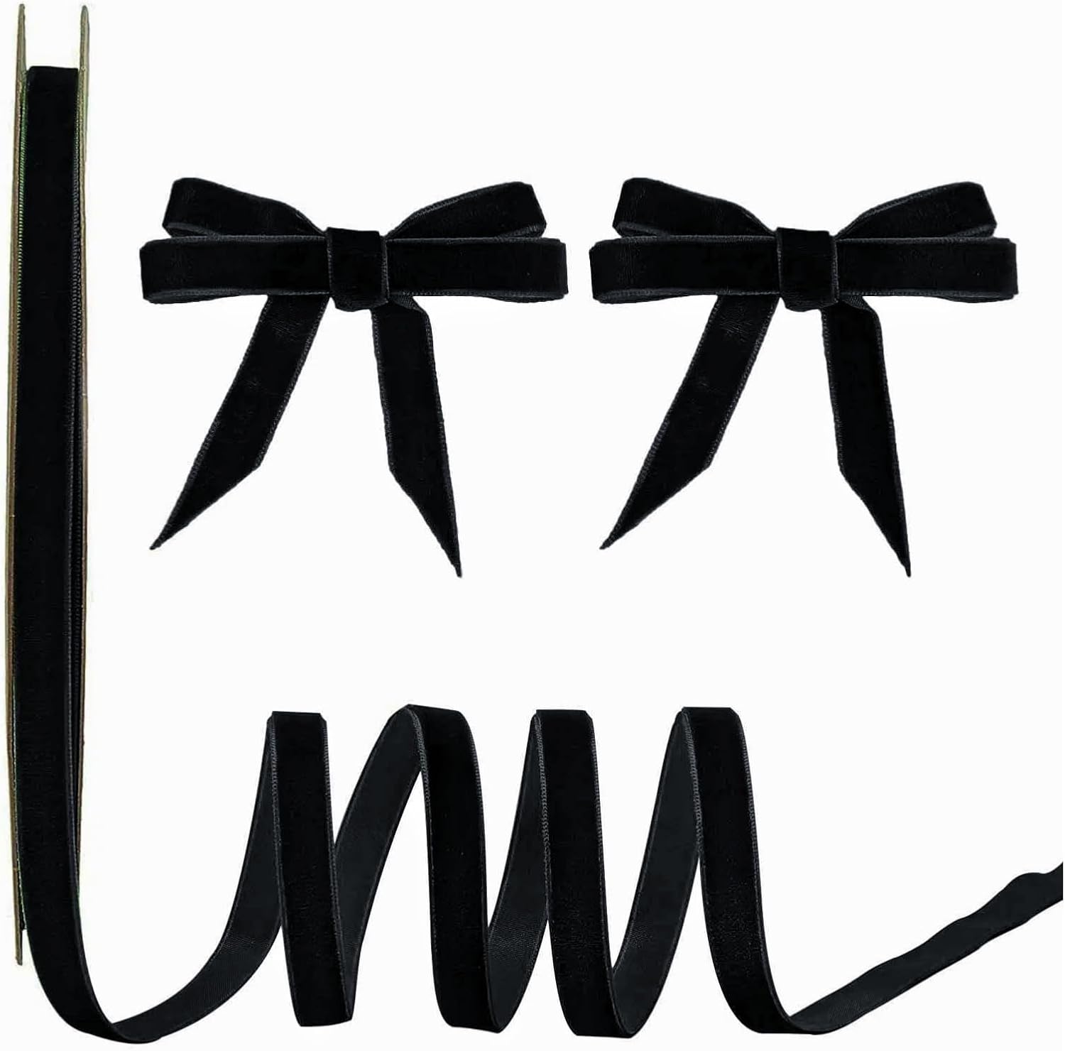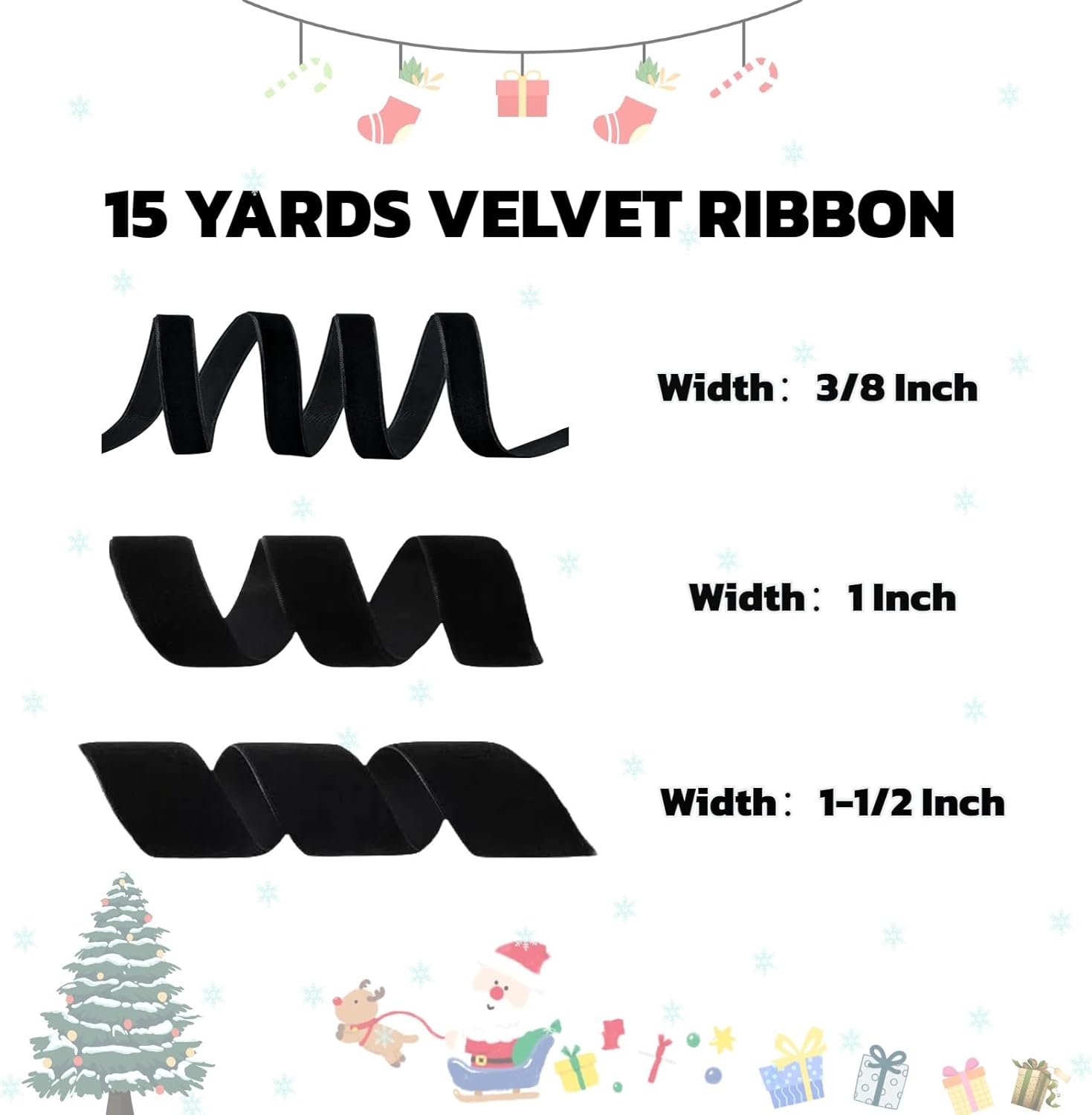 15 Yards Velvet Ribbon 3/8 Inch Single Face Black Velvet Ribbon Spool Prefect for Holiday Wedding, Ribbons for Gift Wrapping, Christmas Tree Ornaments Wreath Hair Bows, Ribbons for Crafts