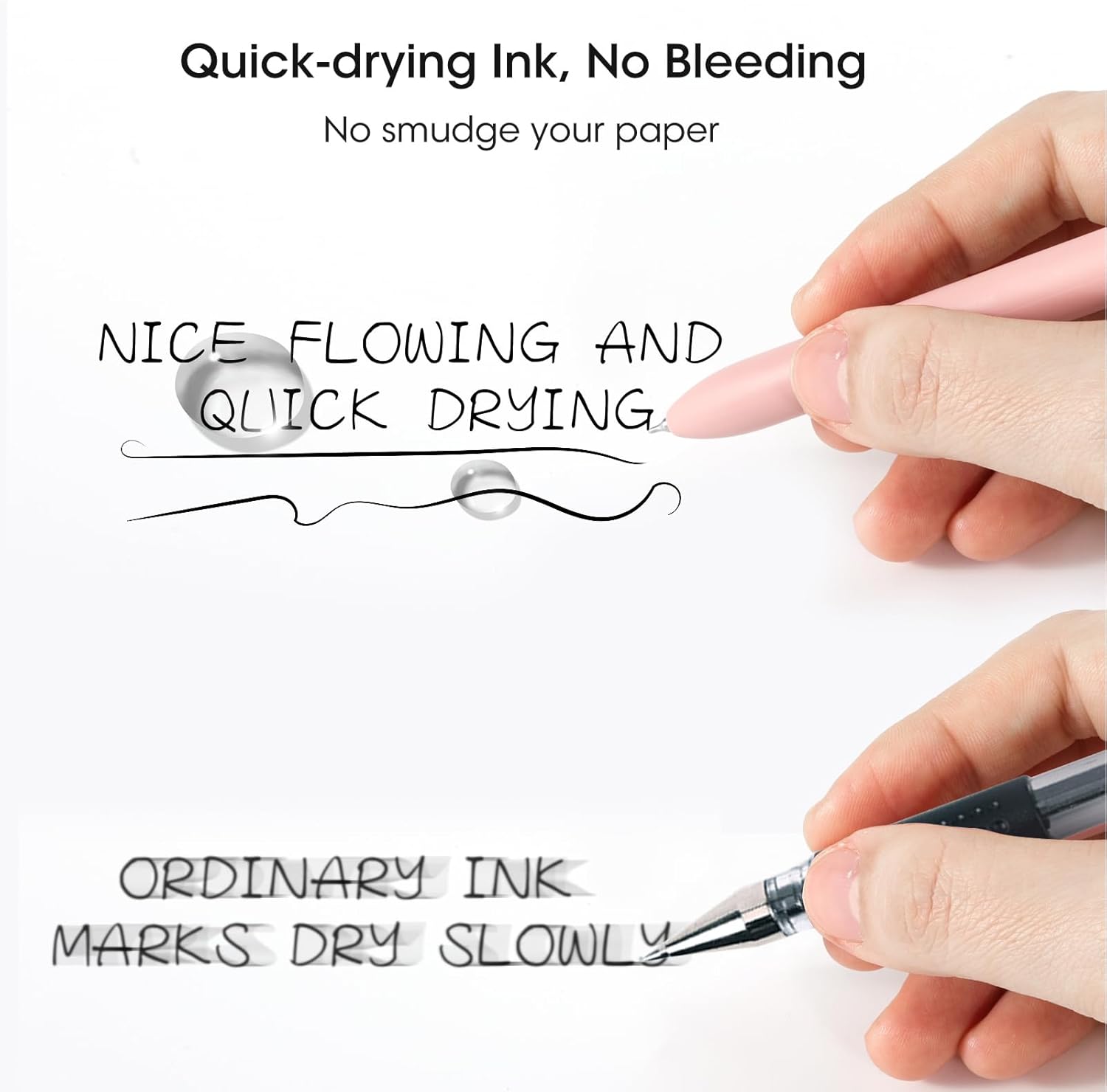 - Quick-Drying Ink Pens:Retractable Rolling Ball Gel Pens with the fade-resistant ink, there’s no need to worry about getting ink on your hands or desk, as it won’t fade, bleed, or smudge.Note: After using the gel pen, it is suggest to lay pen flat or nib face up. This helps protect the pen tip