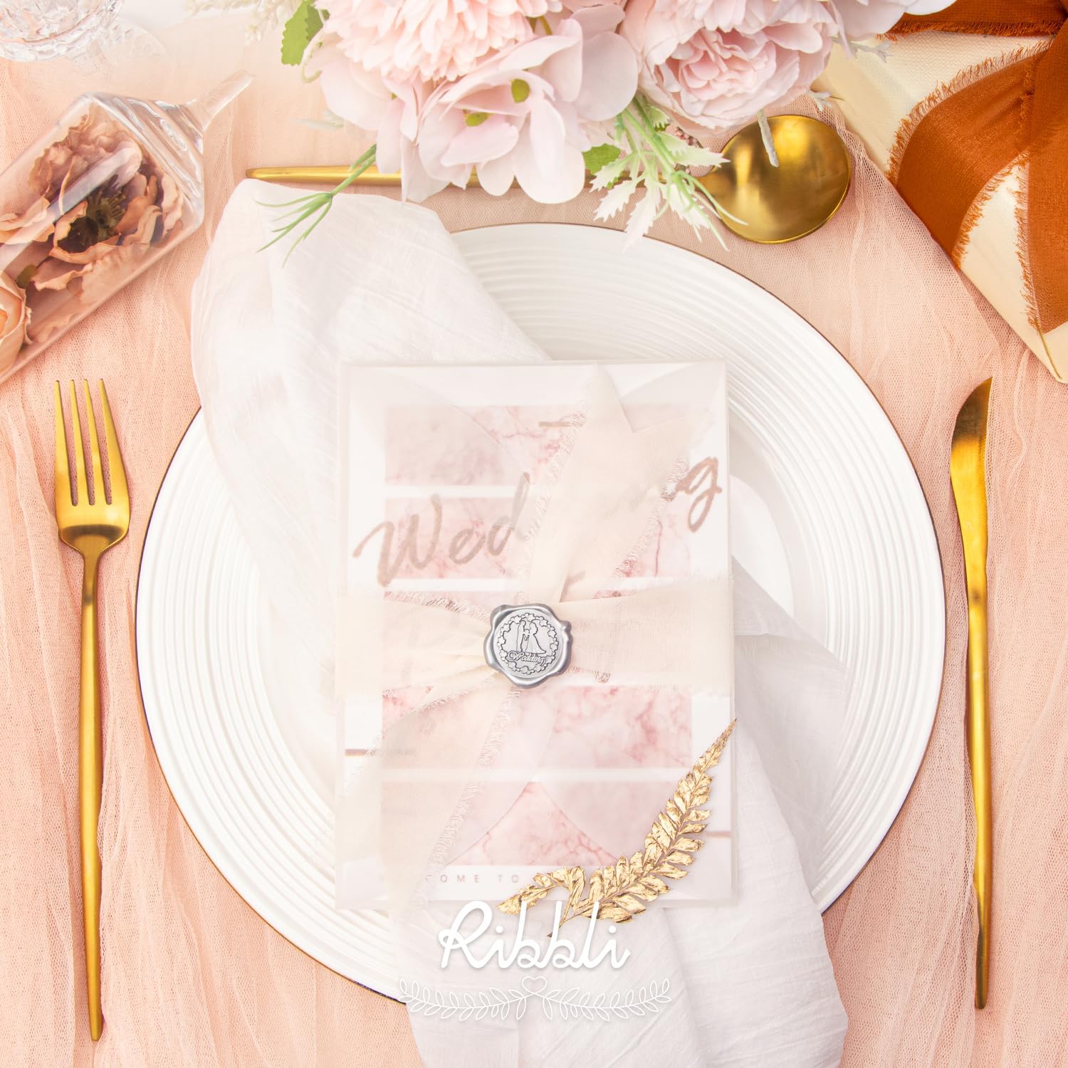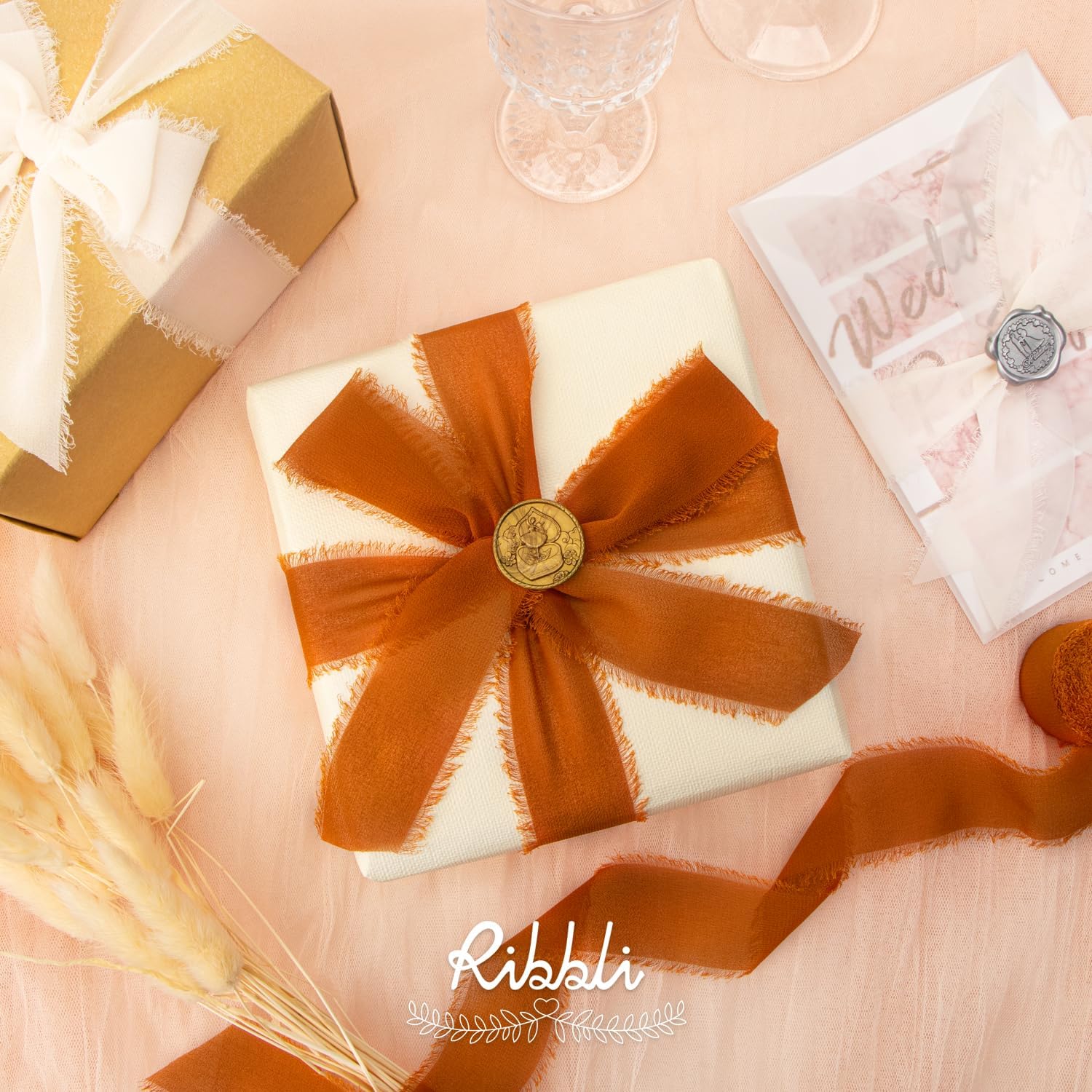 Ribbli Fall Chiffon Ribbon 1.5 inch x 30 Yard Handmade Silk, Cream/Beige/Terracotta Fringe Chiffon Ribbon for Wedding Invitations, Bridal Bouquets Wrapping, Flower Arrangement Decoration