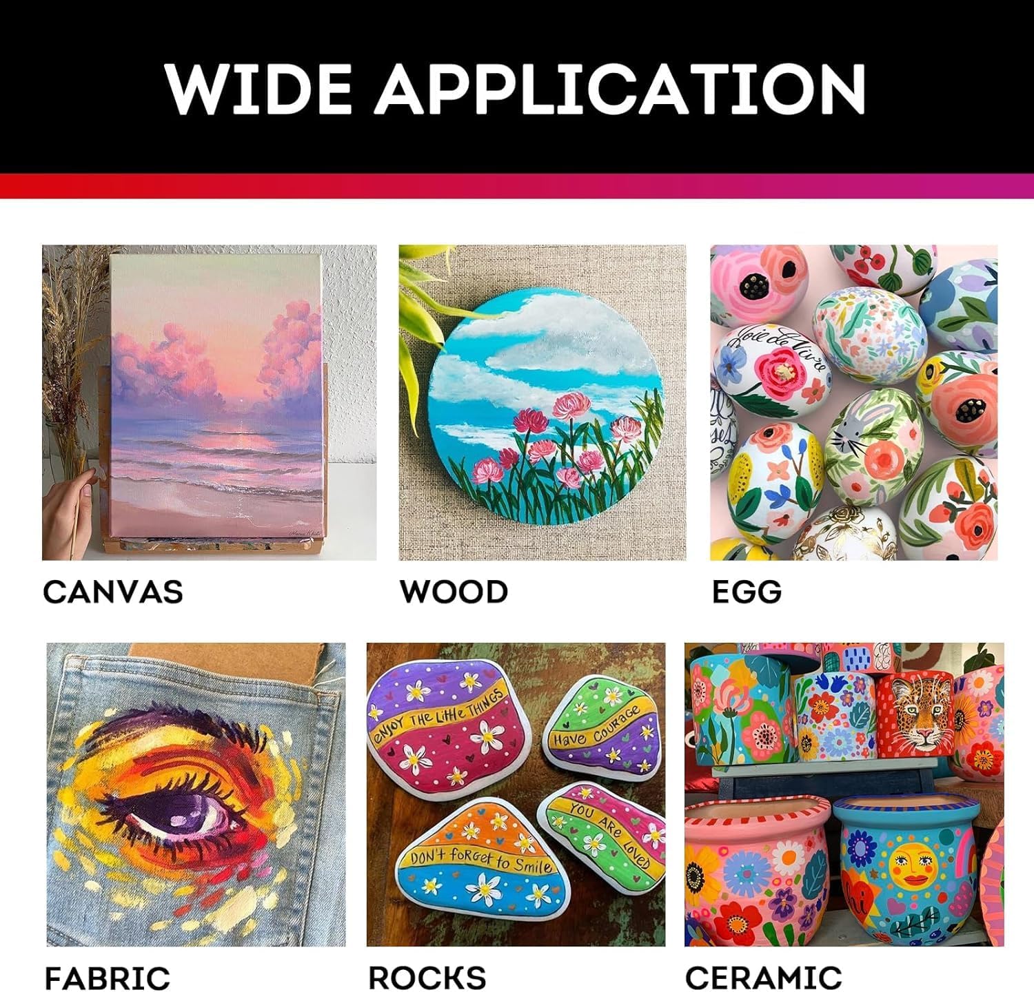 - VERSATILE PURPOSES: These permanent, waterproof, fade-proof and fast-drying paints adhere to a wide range of surfaces, making them suitable for both indoor and outdoor projects. You can use them on glass, rocks, nails, canvas, leather, ceramic, wood, clay, and more.