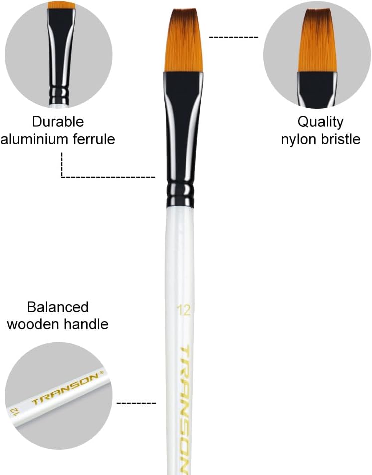 - Transon 14-piece paint brush set features an assortment of brush shapes and sizes, including round, flat, angle, and filbert brushes, providing great versatility for all your art painting needs.