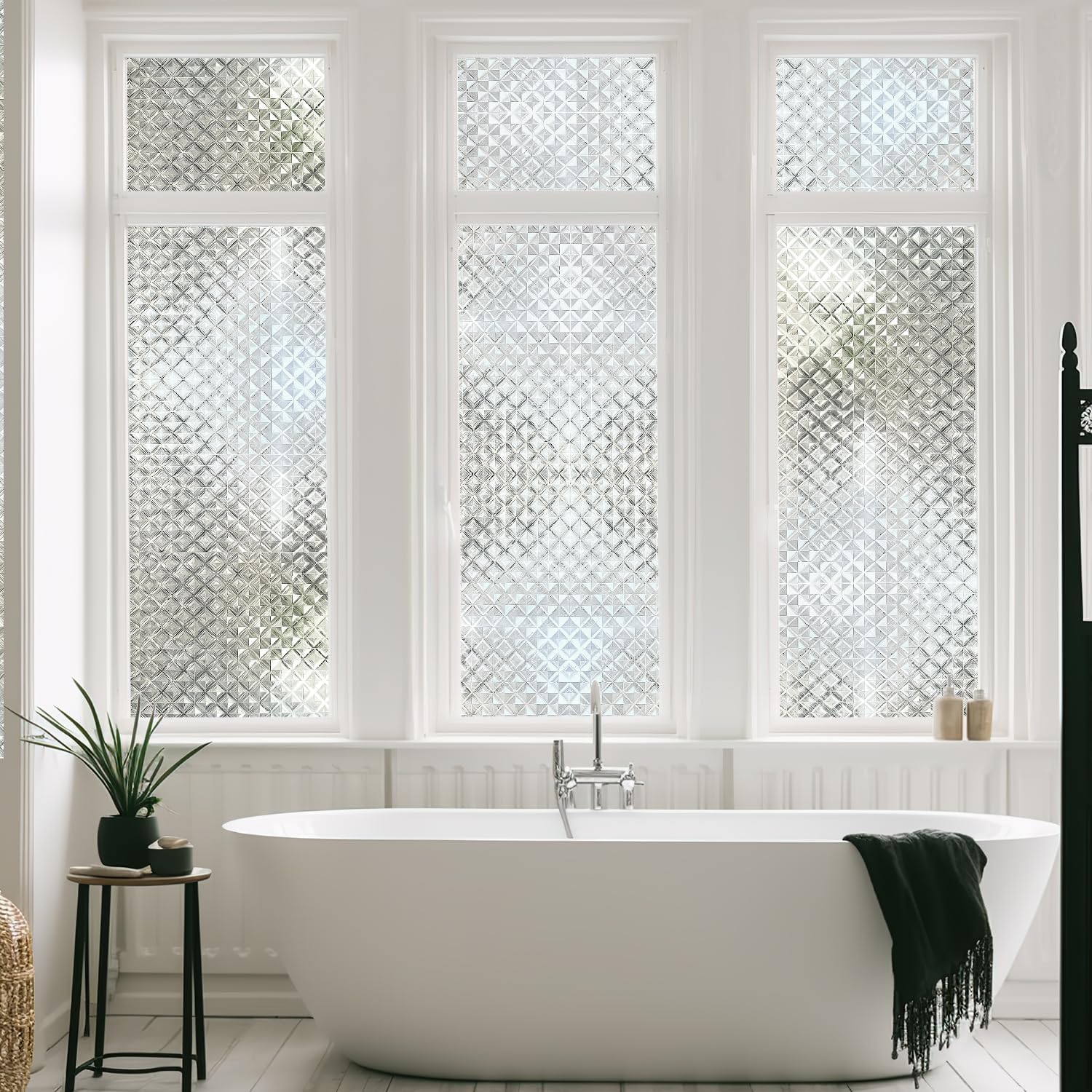 - 3D Diamond Design and Privacy: Transform your windows with eye-catching 3D diamond effects that provide excellent daytime privacy while keeping unwanted views out. Helps reduce distractions—like pets reacting to outdoor movement—while adding a sophisticated decorative touch. Perfect for living rooms, bedrooms, and offices, with larger sizes offering full coverage for bay windows or patio doors.