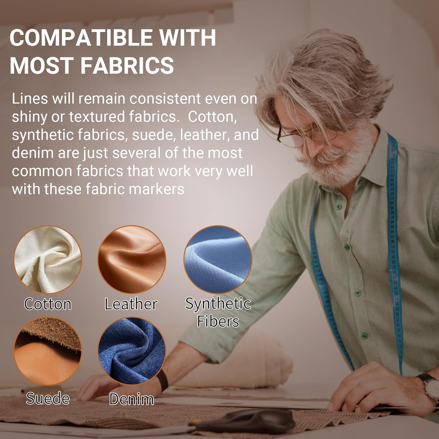 - COMPATIBLE WITH MOST FABRICS - Lines will remain consistent even on shiny or textured fabrics. Cotton, synthetic fabrics, suede, leather, and denim are just several of the most common fabrics that work very well with these fabric markers