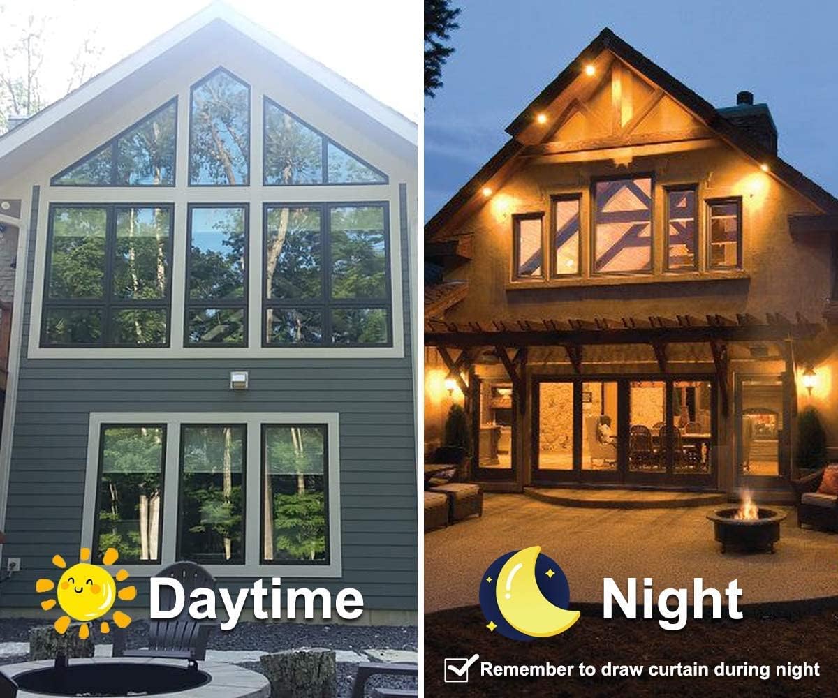 - Daytime Privacy Protection- This reflective window film can only provide great privacy during the daytime, because the exterior glass will create a mirror effect when the light outside is stronger than the light inside. Note: At night, the mirror effect is reversed and people can see the interior from the outside, so remember to draw the curtains at night