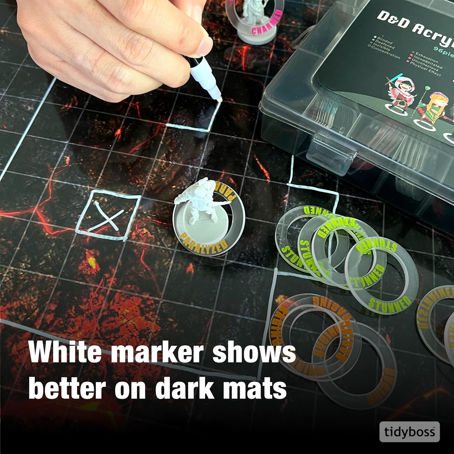 - 💣 Trial Now, Risk Free: The TidyBoss DnD Game Mat Set comes with a 30-Day Money Back Guarantee, so you get to try it, and discover how much more satisfying it is to have a flat DnD battle map within a matter of seconds, one that can handle spills, and with vibrant, unique, easy to see grids and designs. If you’re ready to stop drawing bad grids or battling with curling and creasing, why not try TidyBoss now?