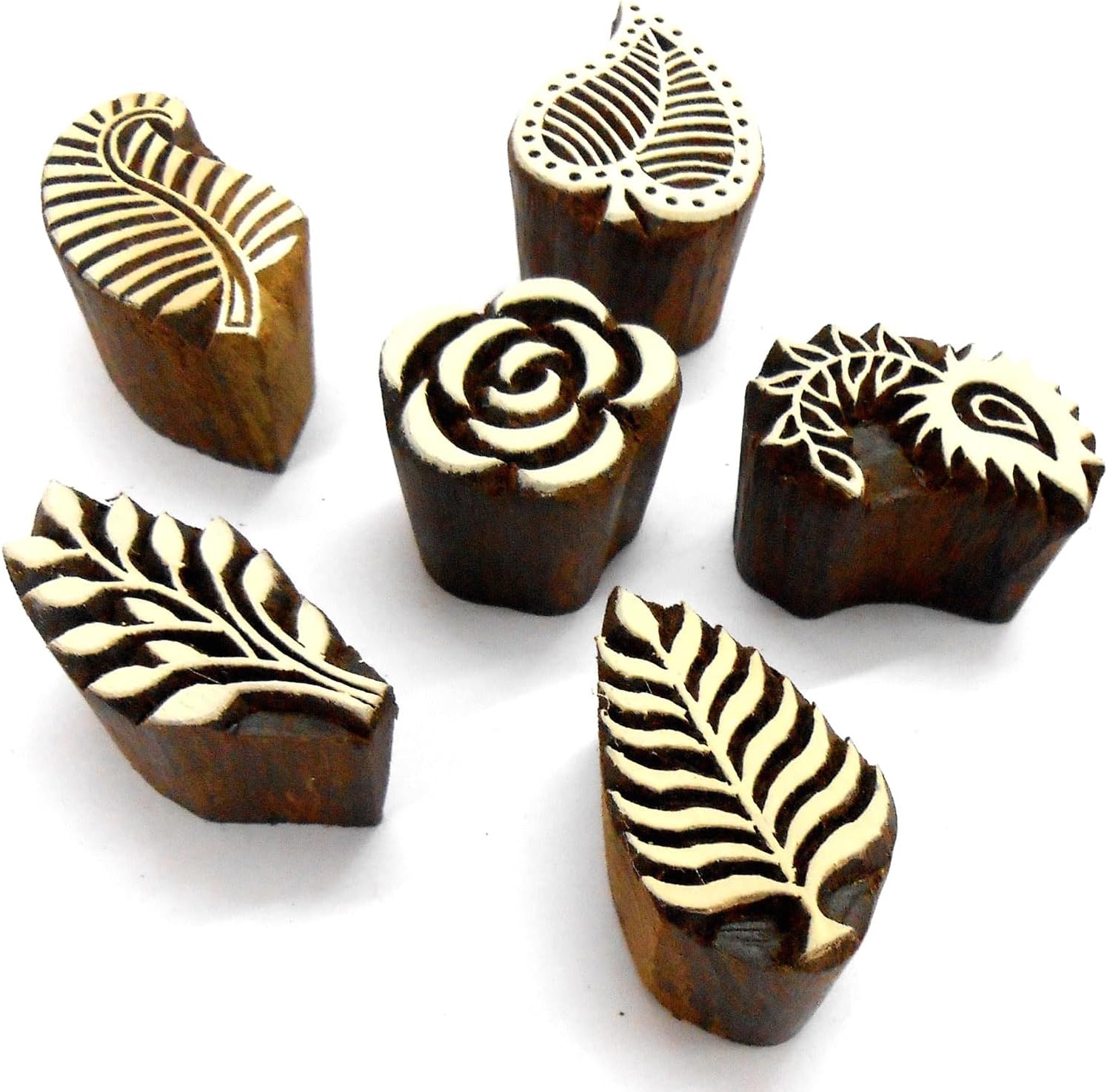 Craftsofindia® Flowers and Leaf Wooden Blocks Stamps for Printing on Textiles, Pottery Crafts,Henna, Scrapbooking (Set of 6)