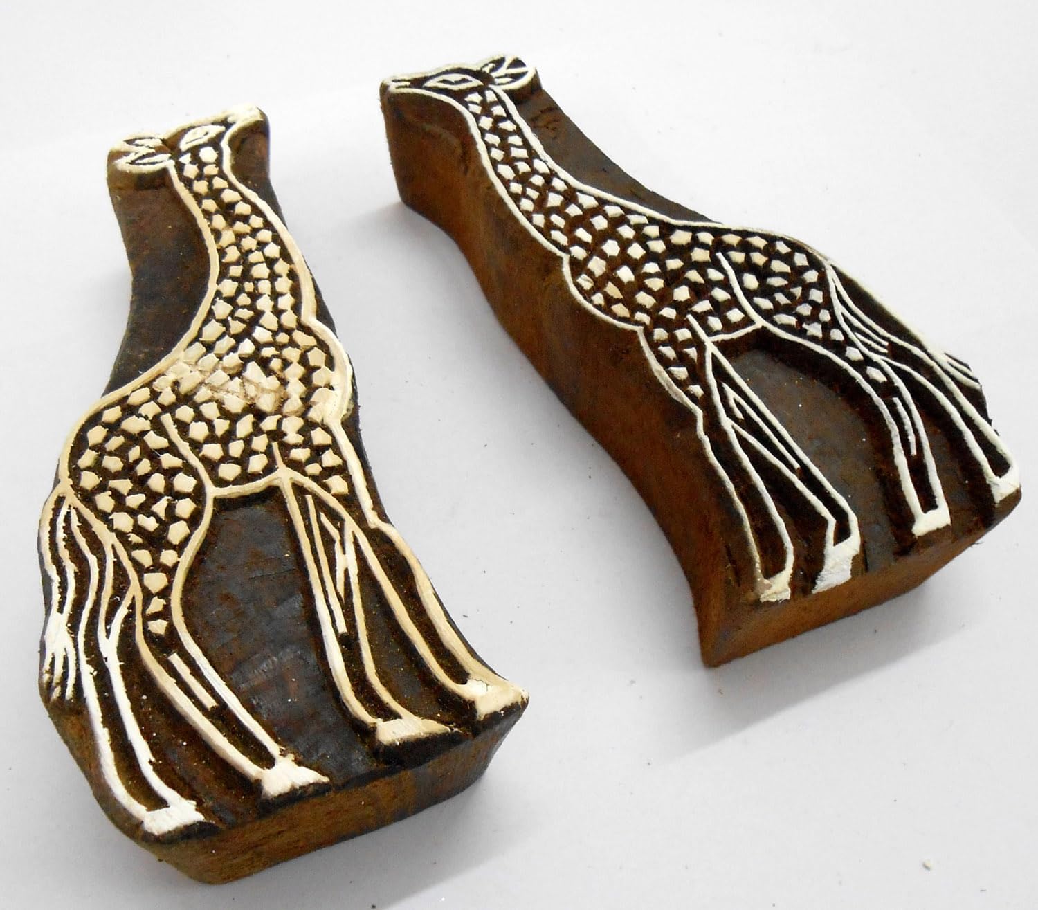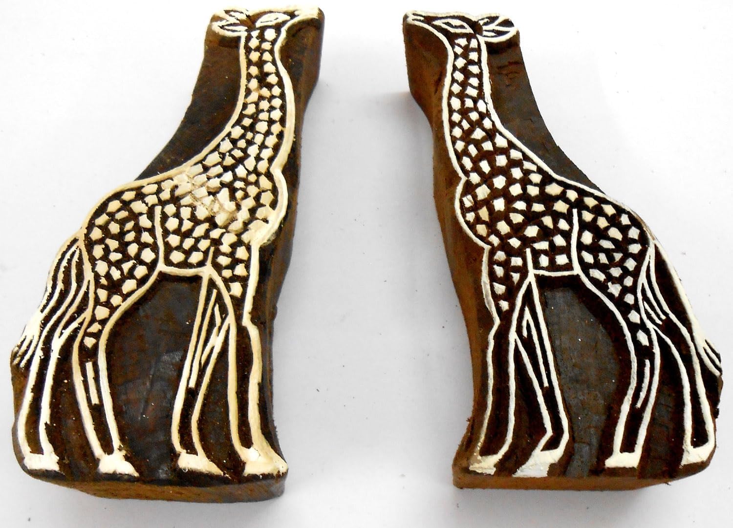 - Crafts of India Pair of Giraffe Wooden Blocks Stamps for Printing on Textiles, Pottery Crafts,Henna, Scrapbooking (Set of 2)