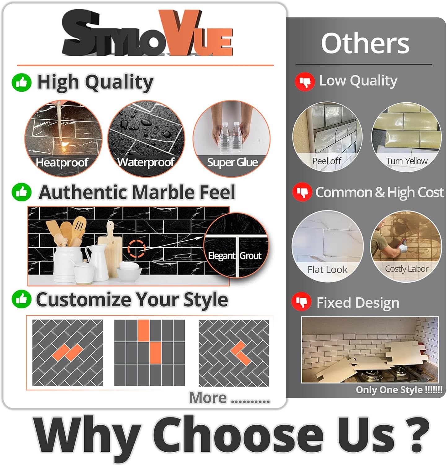 - šš„ššÆššš ššØš®š« šš©ššš: Featuring unique slot edges for a realistic grout-look, StyloVue self adhesive wall tiles offer an authentic design and texture that customers adore. Elevate the aesthetic of your space while simplifying maintenance and cleaning, without the hassle of traditional grouting.