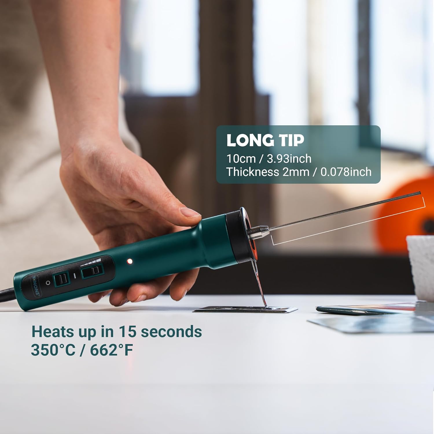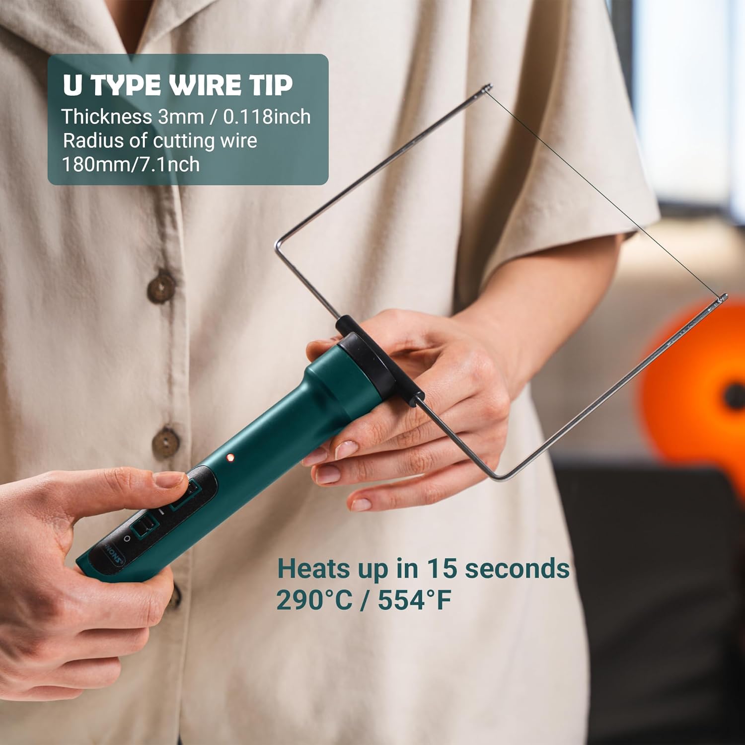 - Rapid heating: This foam cutting tool operates on 15W power, providing adequate power for various foam cutting tasks without compromise on performance. The hot wire tip heats up in 5 seconds up to 400°C/752°F