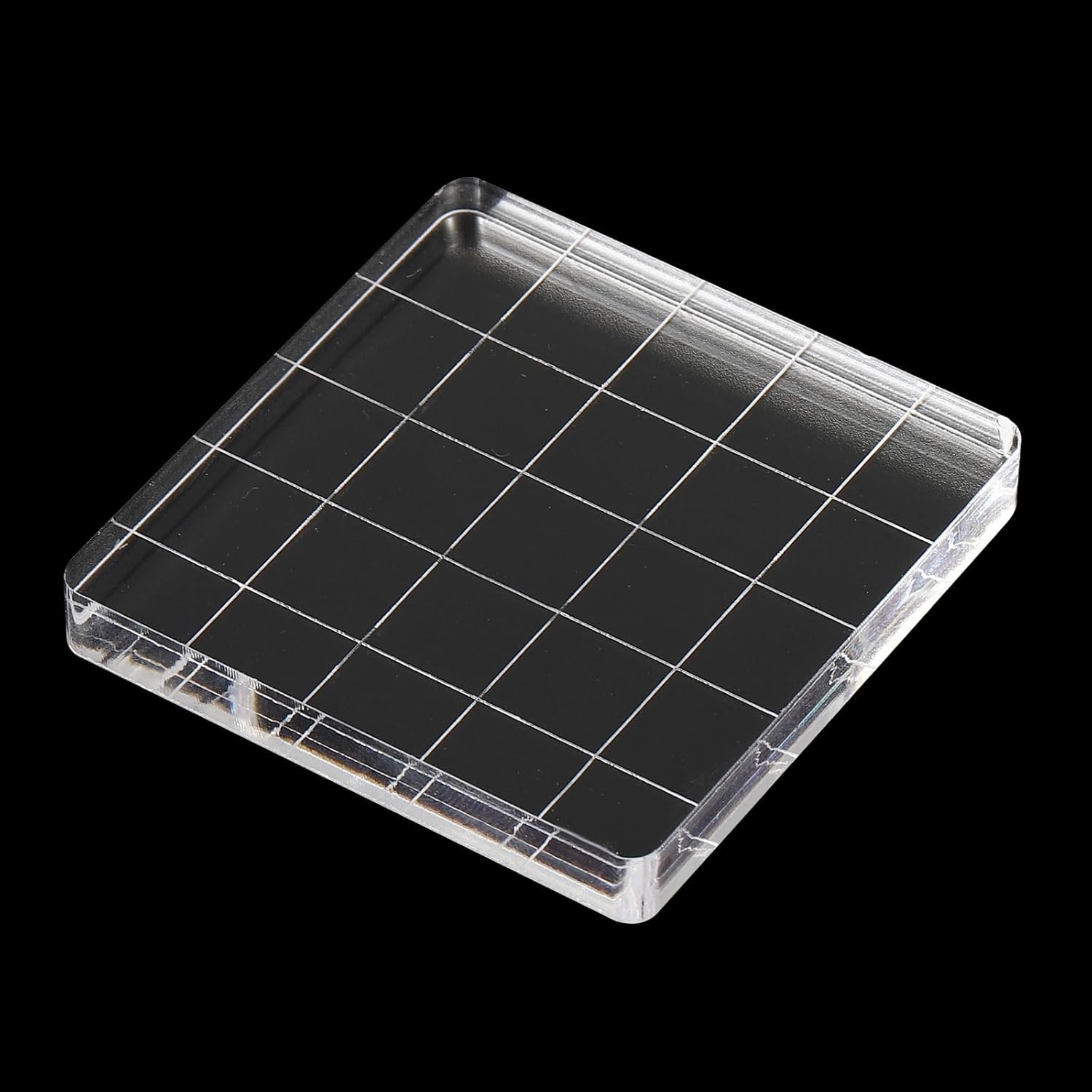 PATIKIL 2" x 2" Acrylic Stamp Block, Clear Stamping Block with Grid Lines Decorative Mounting Blocks Square for Scrapbooking DIY Crafts Card Making