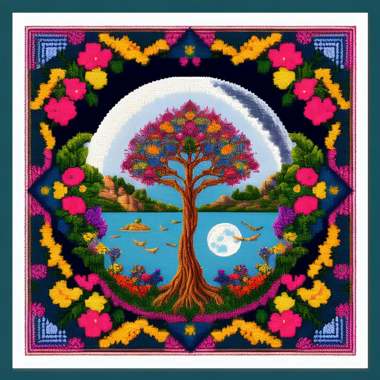 Joyhoor Cross Stitch Kits for Beginners Stamped Cross-Stitch Supplies Needlework preprint Embroidery Kits for Adults DIY Needlepoint Kits Embroidery Patterns 11CT-Magic Tree 17.7x17.7 inch