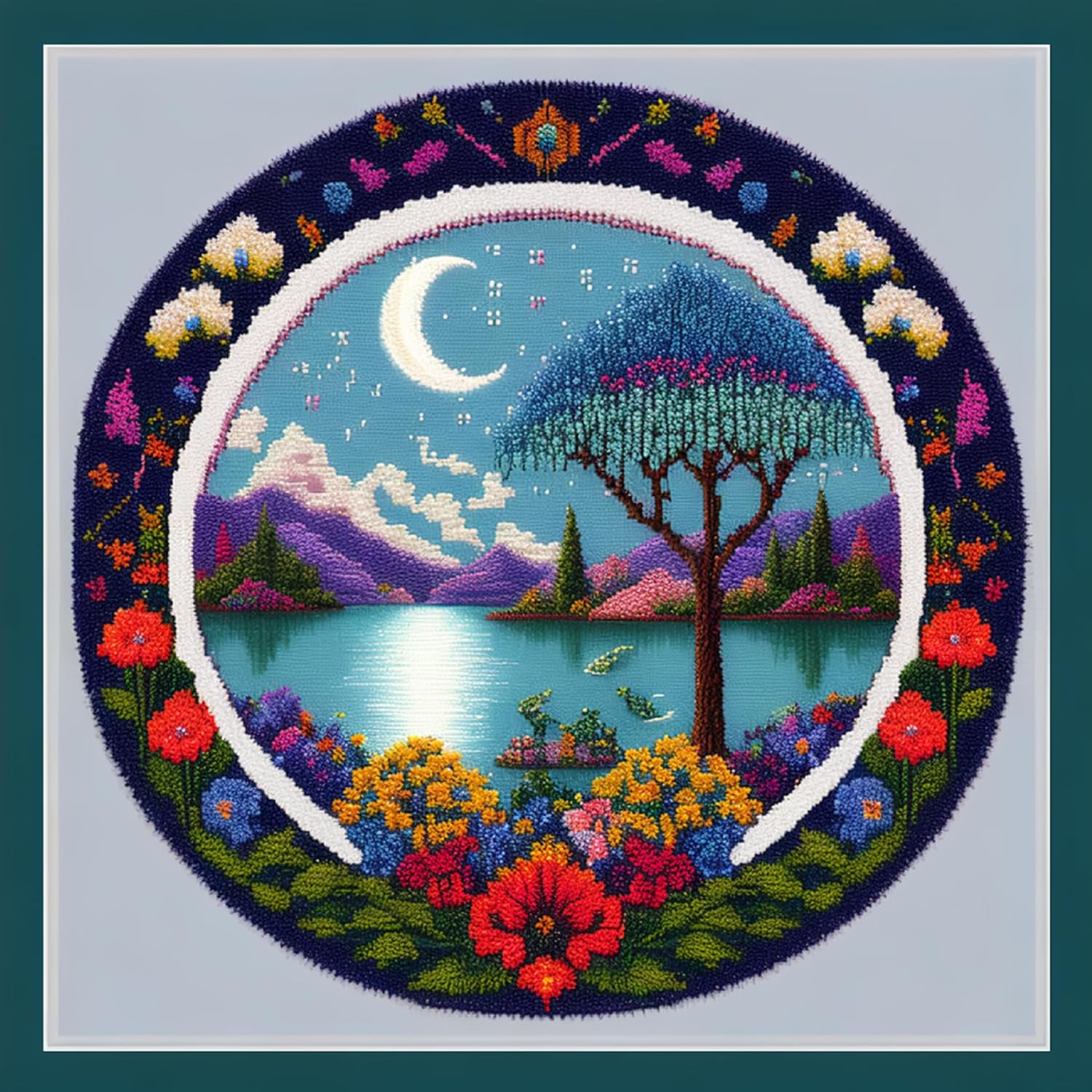 Joyhoor Cross Stitch Kits for Beginners, Stamped Cross-Stitch Supplies, Needlework, Preprint Embroidery Kits, Adults DIY Needlepoint Kits, Embroidery Patterns 11CT-Wreath Moon 17.7x17.7 inch