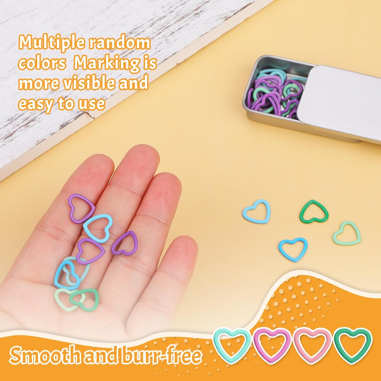 Jmuiiu Heart-Shaped Metal Stitch Markers, 50Pcs Metal Colorful Crochet Stitch Markers for Knitting Crocheting Clothing Tag DIY Craft Project with Storage Box