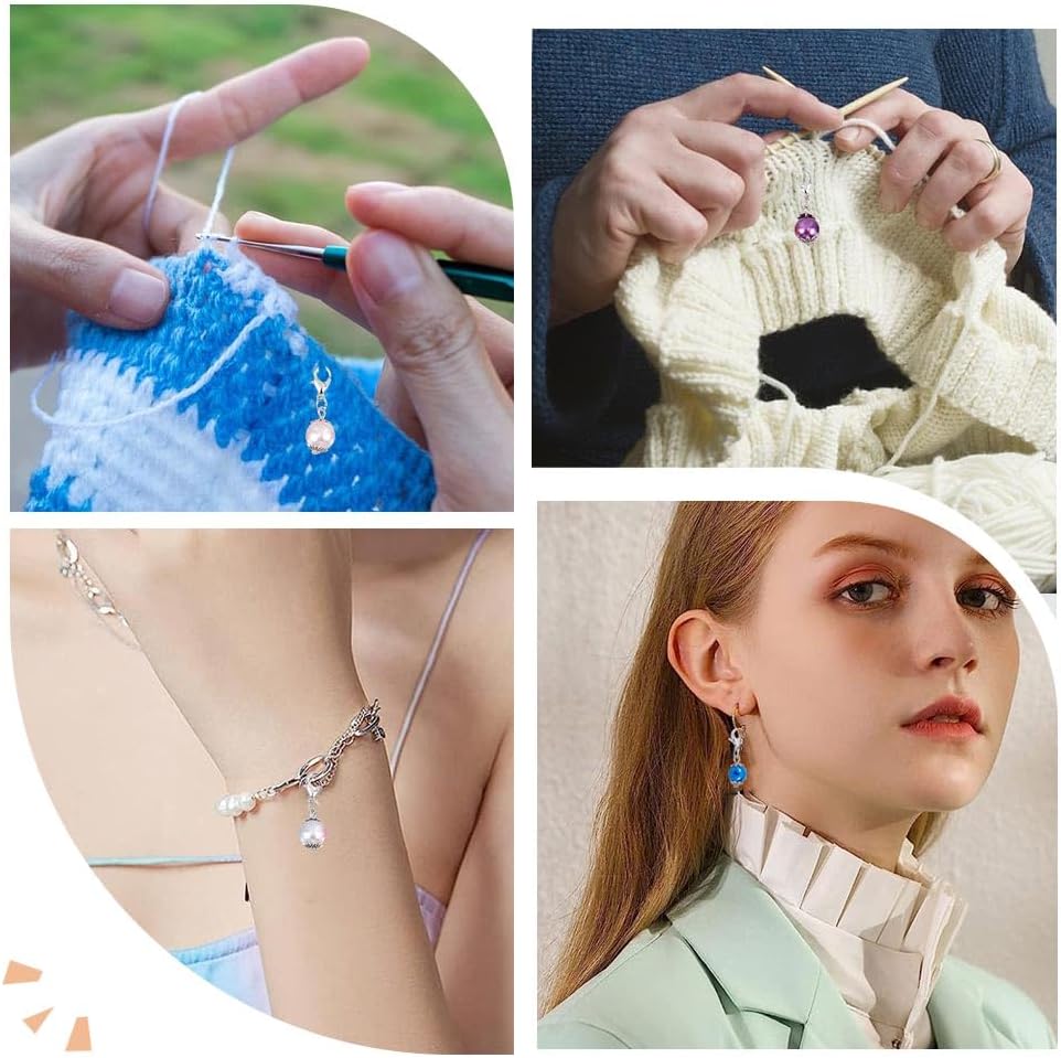 - [SIZE]: Knitting markers charms: 31mm(1.22inch) long, pearl charms: 16.5x10mm(0.65x0.39inch), clasp: 12x7x3mm(0.47x0.28x0.12inch), 1pc/color, 12 colors, 2 bag, earring hoops: 45x0.8mm, 1pc;