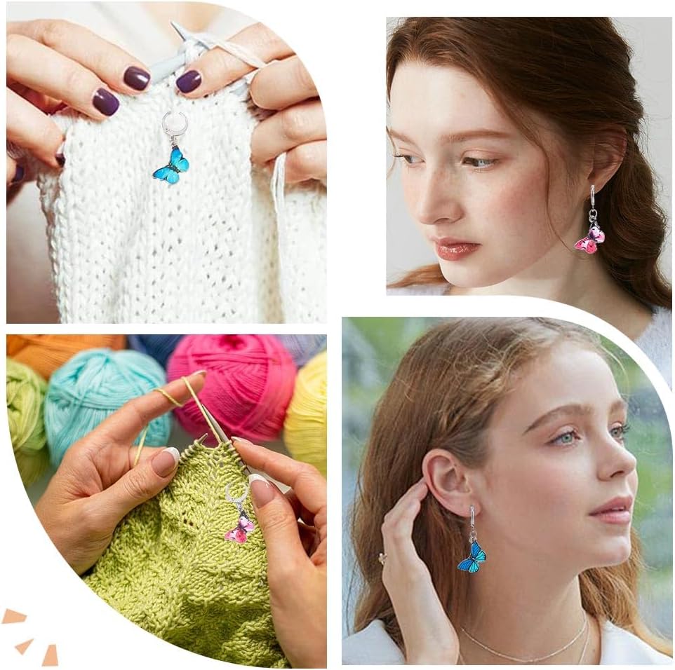 - [1 BOX 20PCS STITCH MARKERS]: SUNNYCLUE upgraded knitting stitch markers, 20pcs butterfly enamel charms knitting stitch markers are packed in SUNNYCLUE gift box, easy to select and store, larger leverback hooks can be used easier. Package contains knitting stitch markers, linking hoops for hanging, plastic box for store and protection, paper box for gift package.