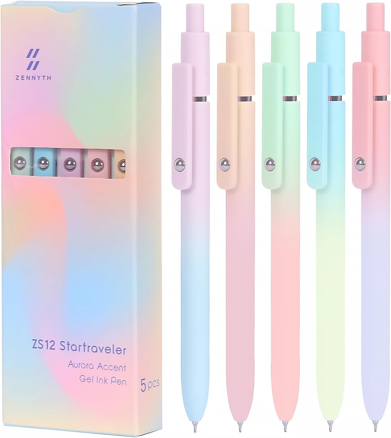 FIOVER Gel Pens, 5pcs Black Ink Medium Point 0.7mm Smooth Writing Pens with Comfort Grip, Aesthetic Ballpoint for Journaling School Office Supplies, Gifts for Women Men(5PCS Gradient Black Ink)