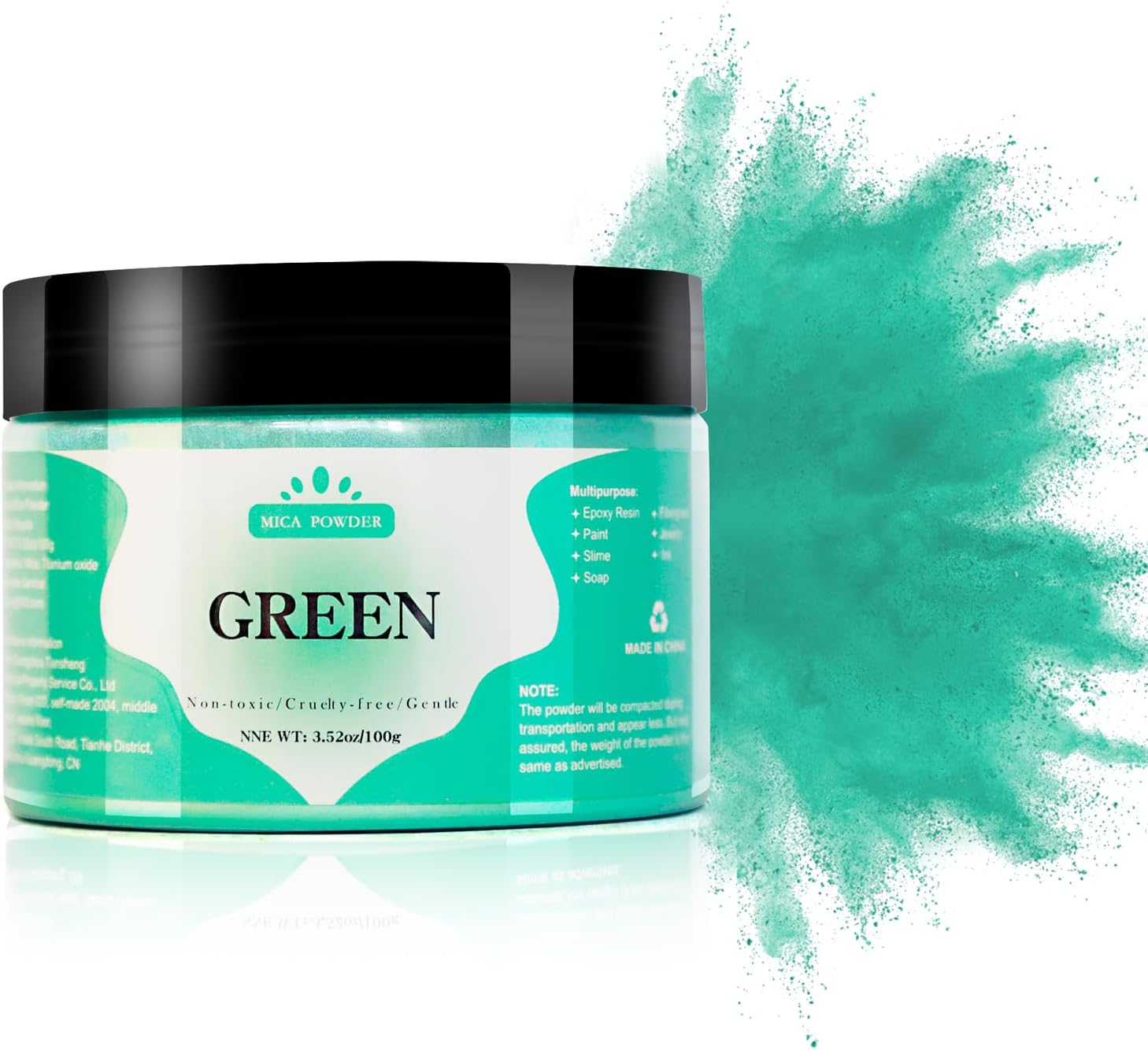 Mica Powder - 100g Mica Powder for Epoxy Resin - Metallic Color Pigment for Resin, Soap, Bath Bombs, Eye Shadow, Nails, DIY Crafting Projects etc. (Green)