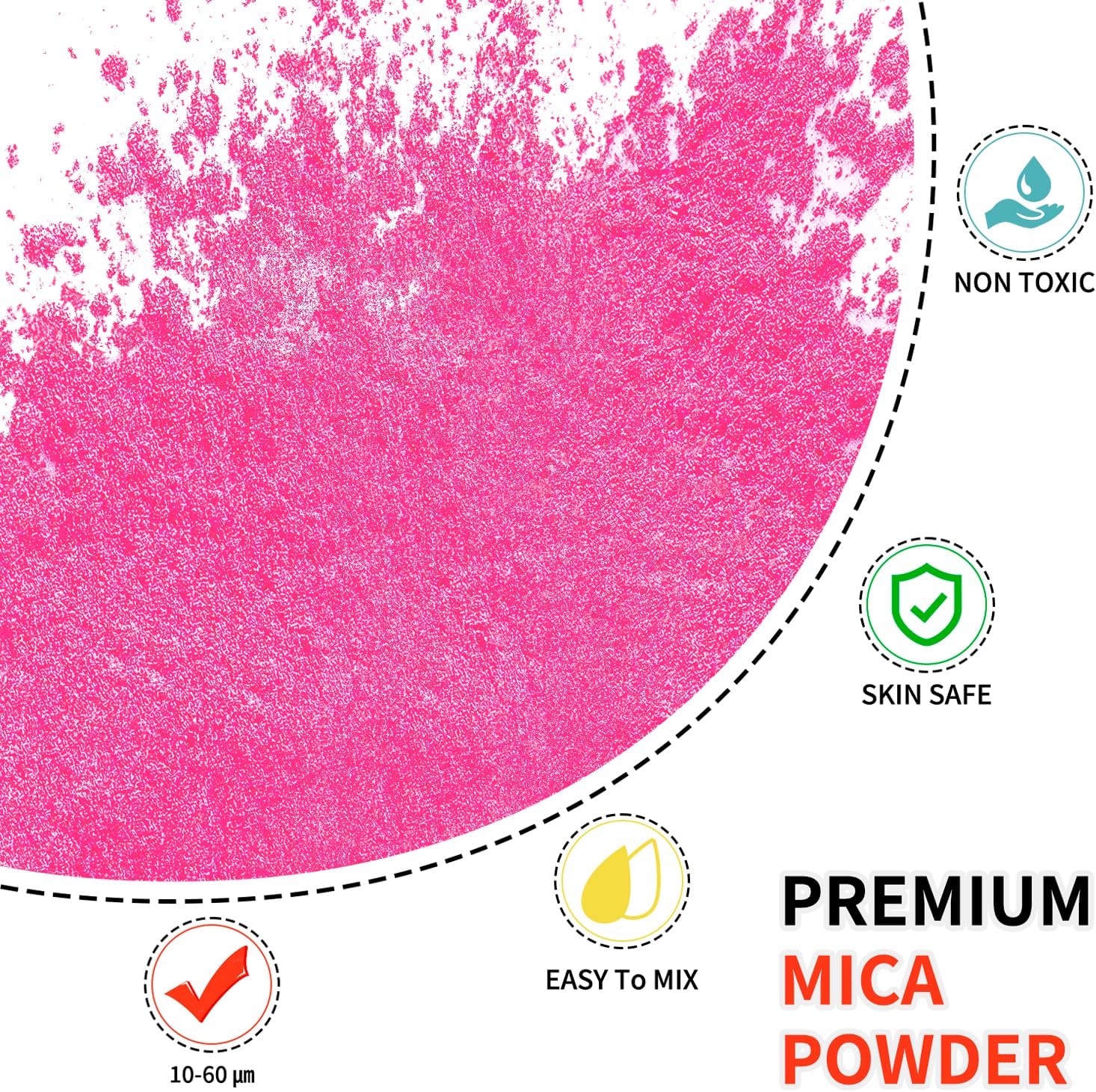 - 【Widely Use】This Premium mica powder are very fine particle pigment that can work well with epoxy resin, soap making, makeup, cosmetics, slime, nails, bath bombs, etc.