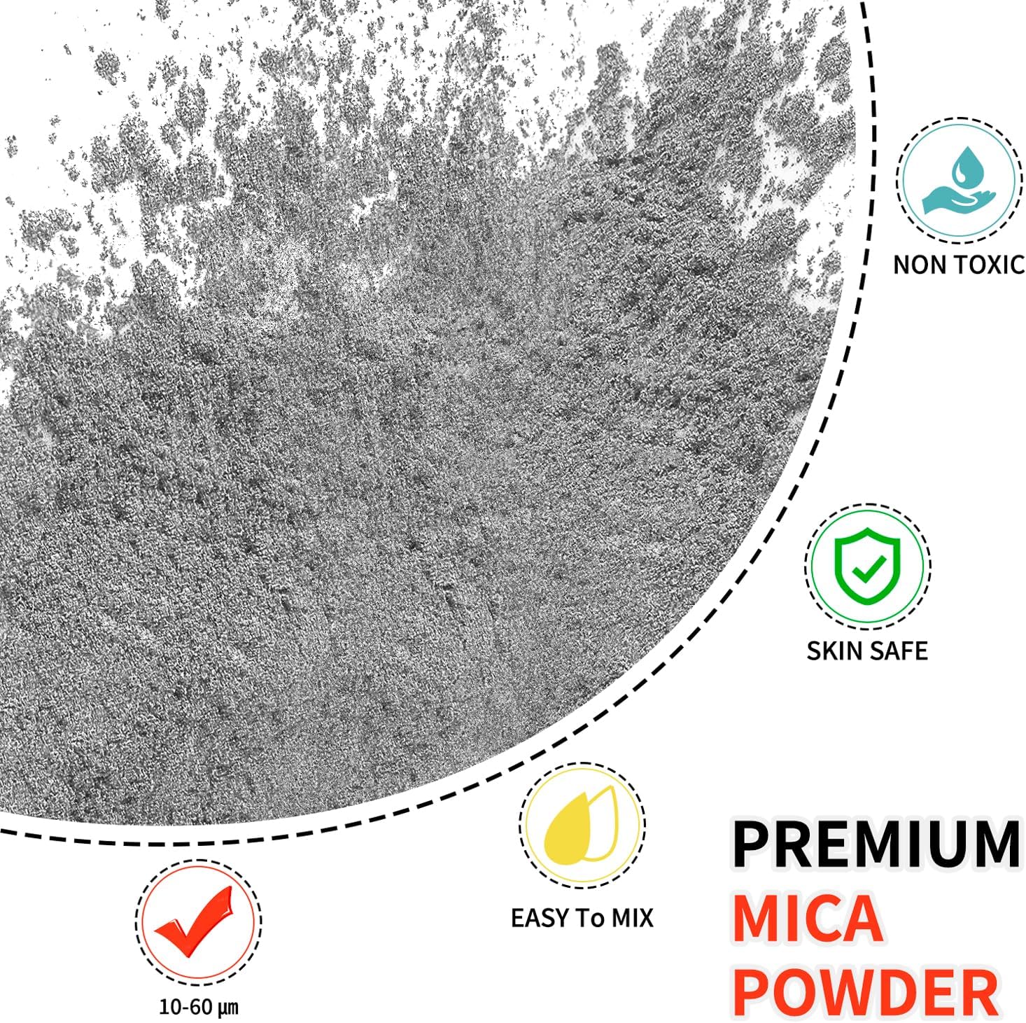 - 【3.52oz/100g Silver Gray】This pigment powder is 10-60µm in size. Comes with 100g(3.52oz) per jar would meet your large dye needs.