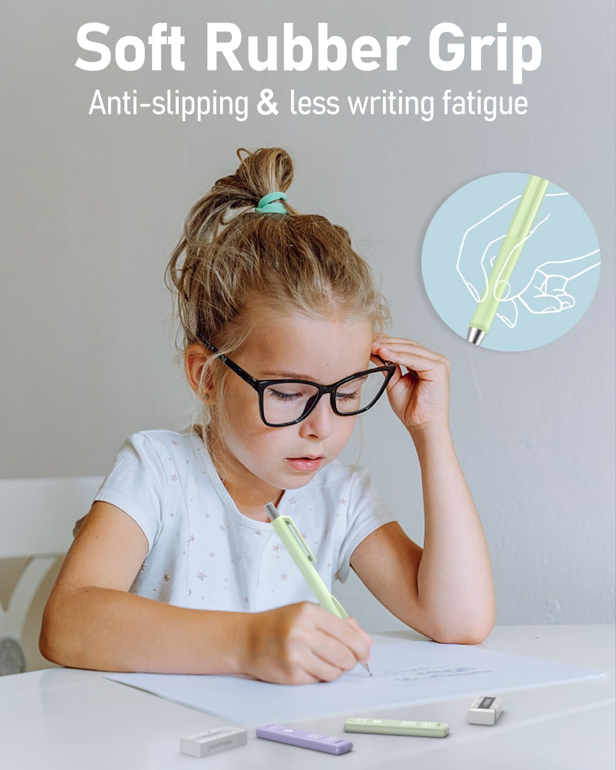 - [Anti-skidding grip] Our mechanical pencil have non-slip surface and an exceptionally soft rubber grip, ensures a secure and comfortable hold for both writing and drawing, It is thoughtfully designed to alleviate hand fatigue and enhance your overall writing experience