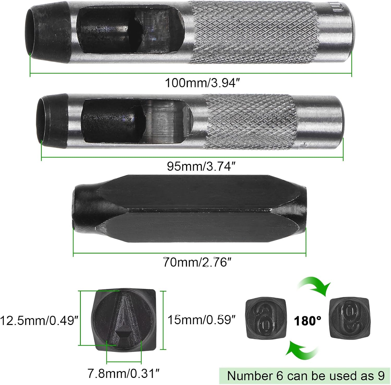 - Metal Stamping Kit - Contains 36pcs of metal punch stamps (26 capital letters from A to Z, numbers from 0 to 8 , an "&" Symbol) sized 1/2" (12.5mm) of each, and 2 sizes of hole punches.