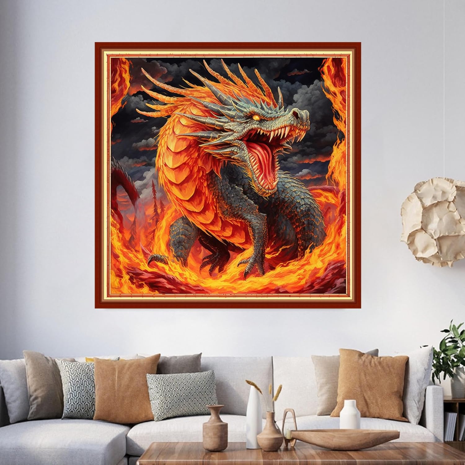Foxhool Beginners Cross Stitch Kits Stamped Full Range of Embroidery Kits for Adults DIY Cross Stitches kit Embroidery Patterns for Needlepoint kit-Fiery Dragon 17.7x17.7 inch
